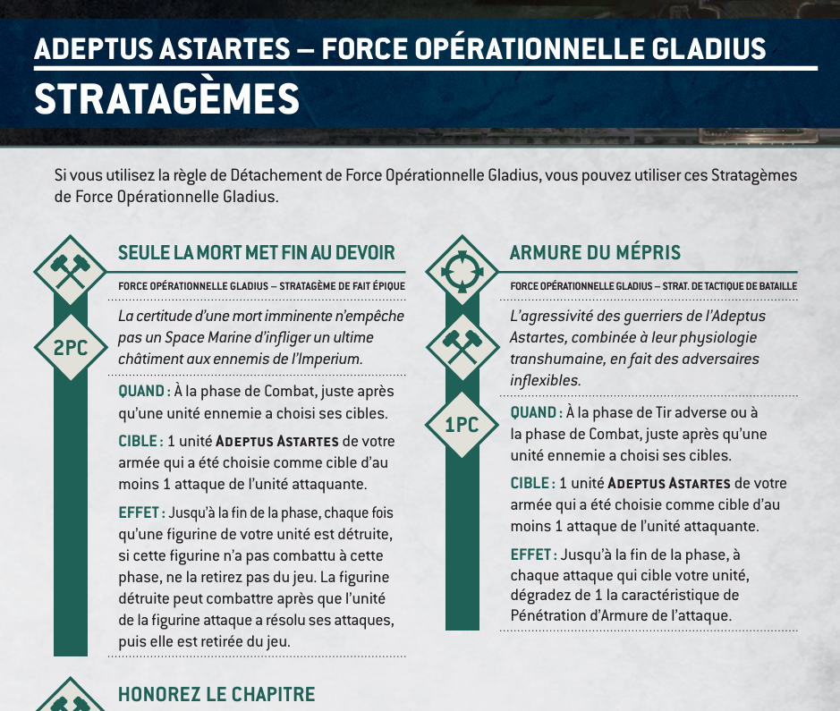 - Appliquer les règles spéciales et stratagèmes en jeu.