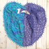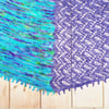 The stockinette half of the shawl is written in purple throughout the pattern to help keep track of colour changes.