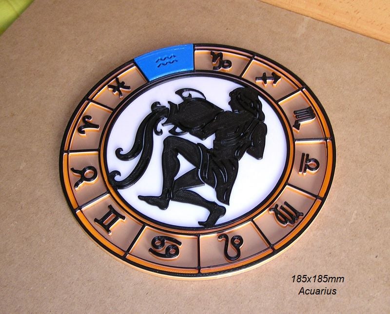 Logo, silhouette, horoscope, Aquarius, these STL and Gcode files have been created to be printed in various colors with any FDM type printer. The color changes have been made with the Elegoo Neptune 3 Pro printer, but they can be printed on any printer.