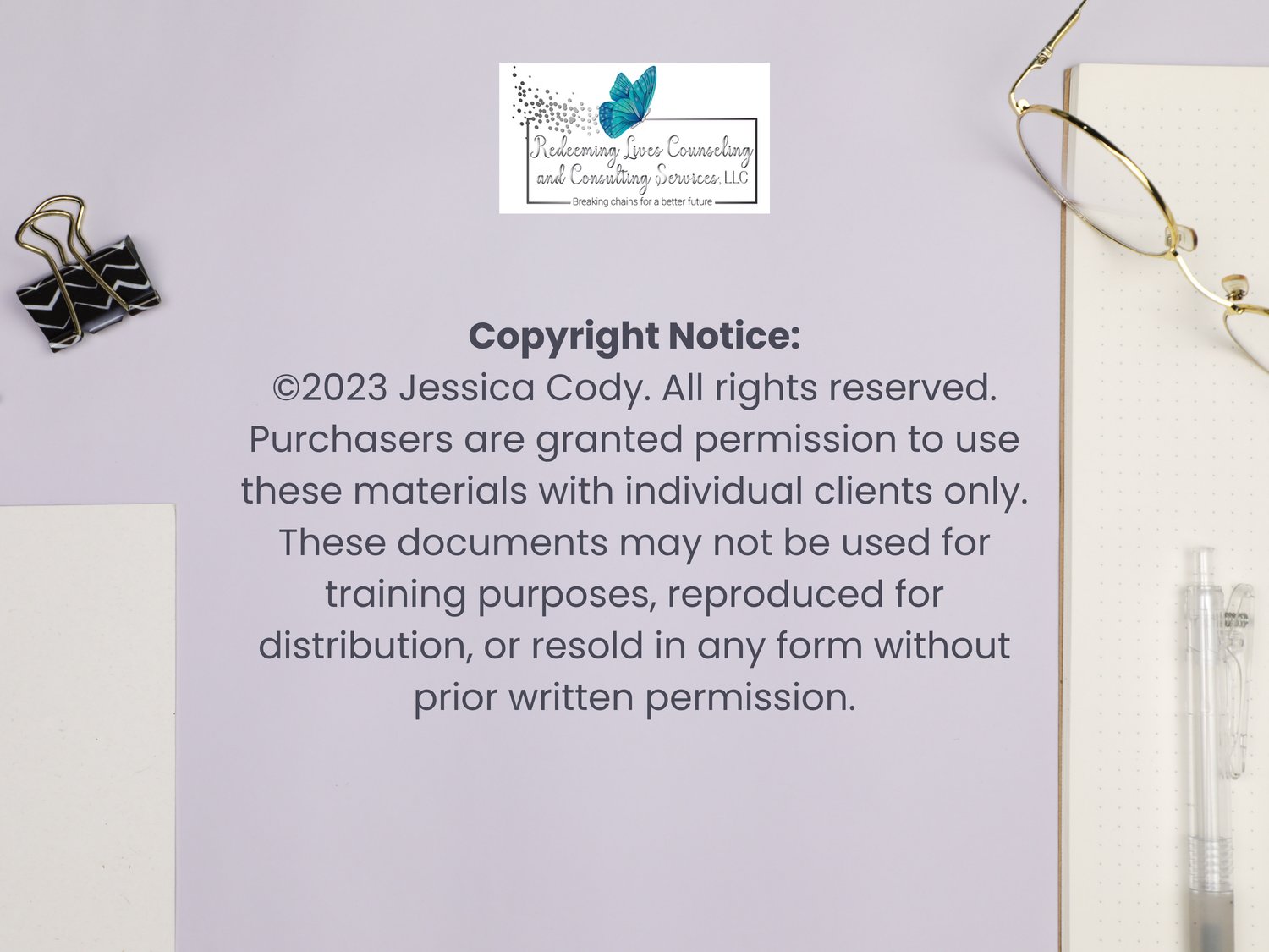 Licensed for individual clinician use only. This document may be printed for use with your own clients in a therapeutic setting. It may not be reproduced, resold, or used in trainings without permission.