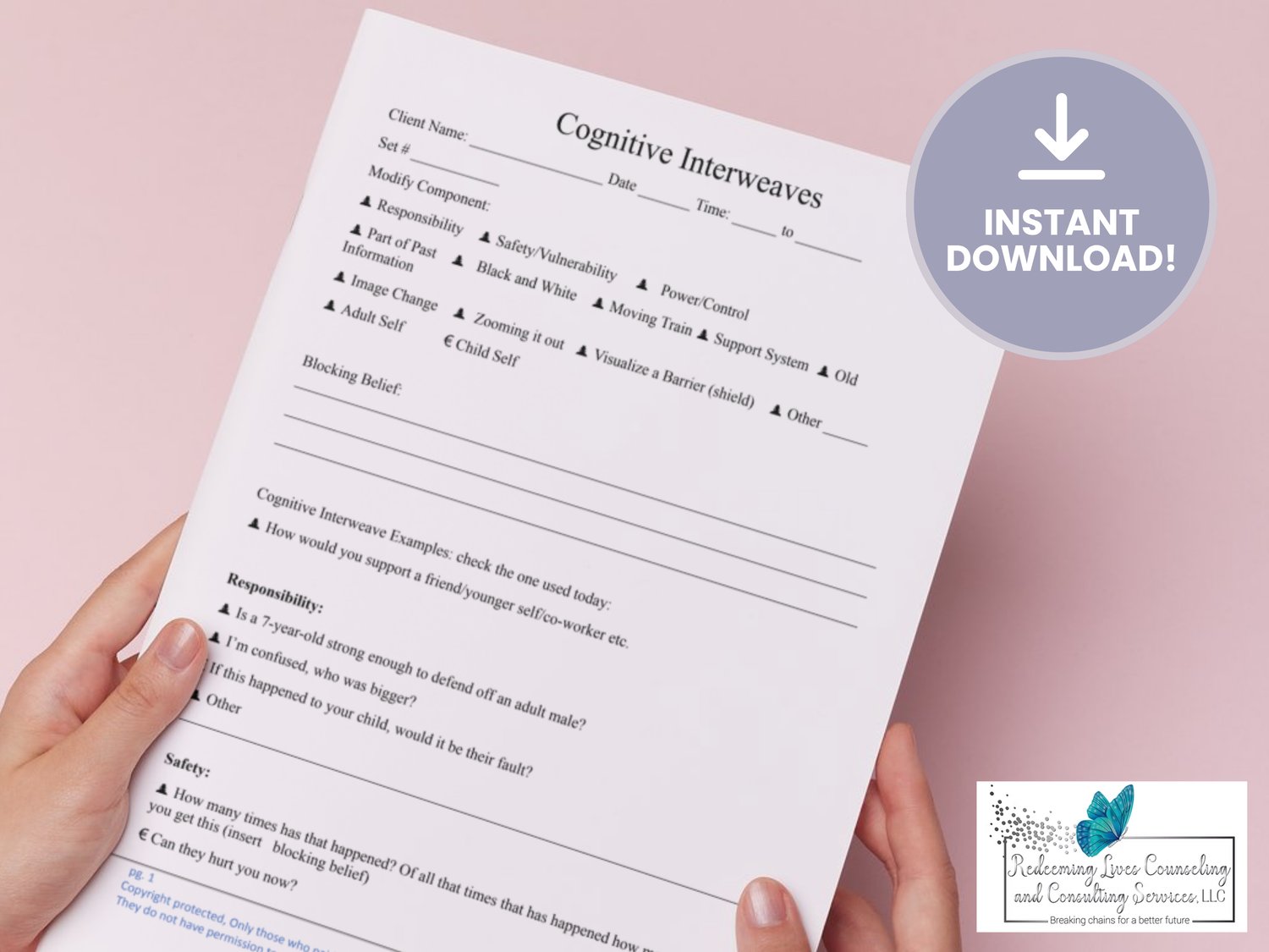 This Cognitive Interweaves clinician handout is designed to help EMDR therapists effectively navigate client blocking beliefs and stuck processing. It provides a structured, easy-to-use set of prompts you can use in-session to help clients reframe, challenge, and transform unhelpful cognitions.