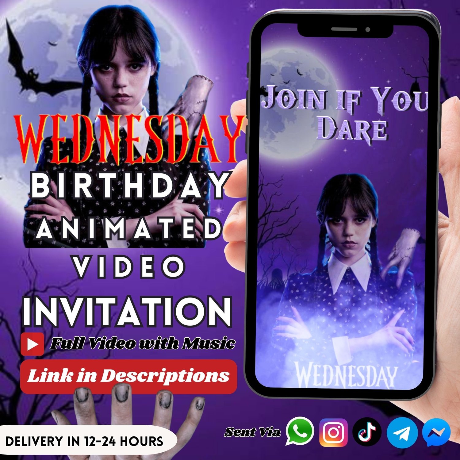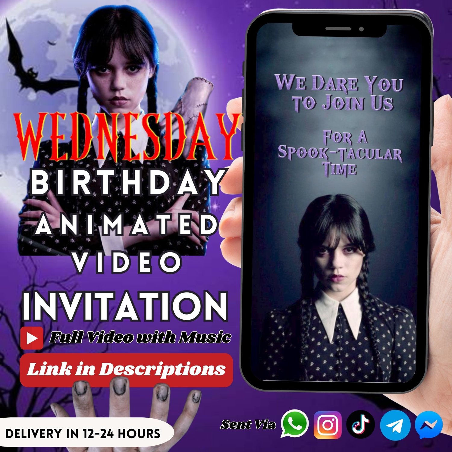 Introducing our Wednesday Addams Birthday Invitation! Perfect for spooky theme Halloween ghost parties captures the spirit of one of the most beloved horror series, the Addams family