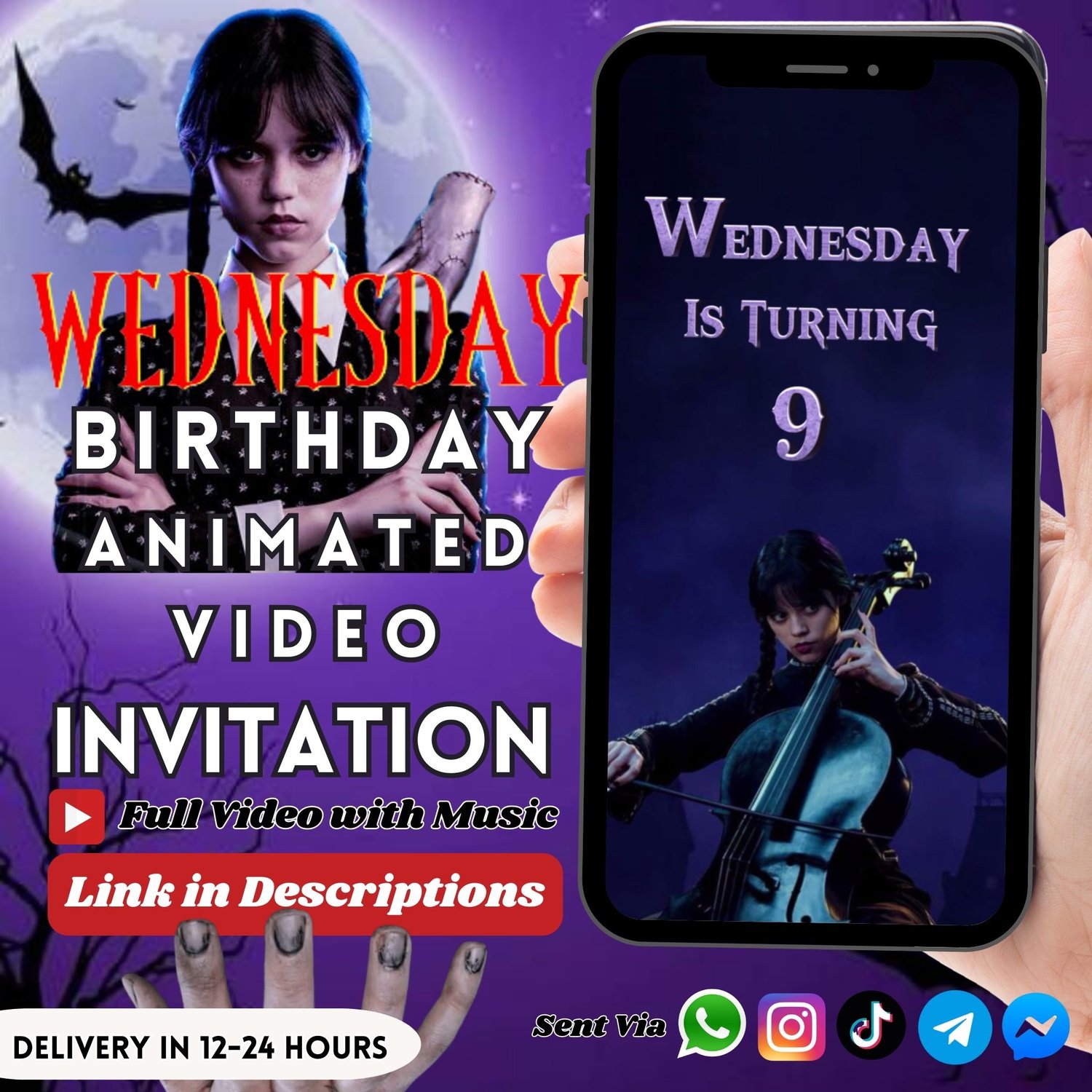 You will receive your MP4 video invitation through a message or email within 12-24 hours