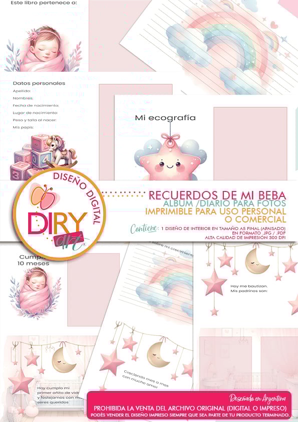 Si está por llegar una nueva integrante a la familia, o querés guardar los primeros momentos de tu pequeña, este archivo digital te va a ayudar a crear un álbum único, lleno de amor y recuerdos. 💕