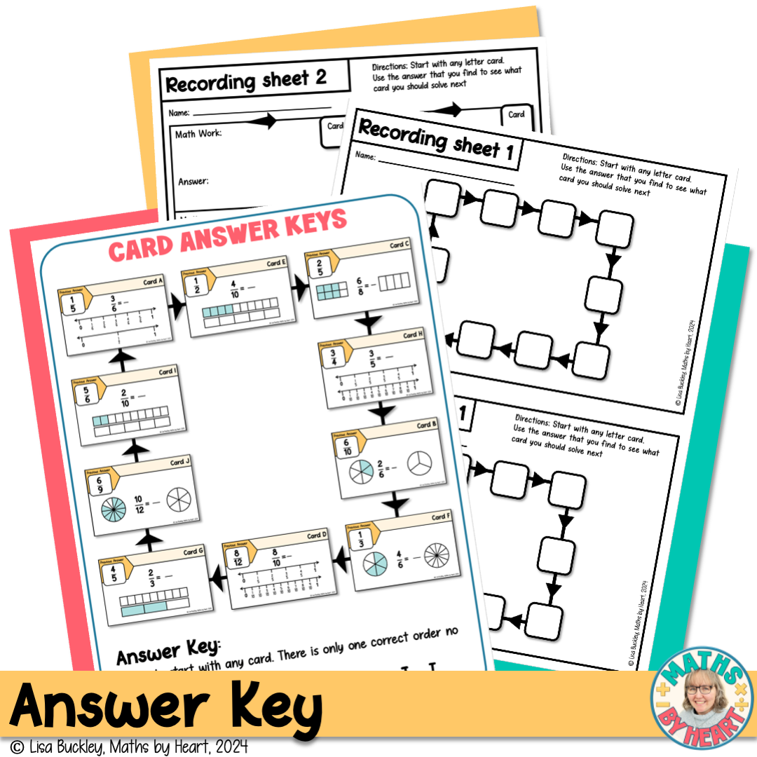 4. Each card has a fraction problem which the students will have to solve. The number in the top left corner is the answer to ANOTHER Card.