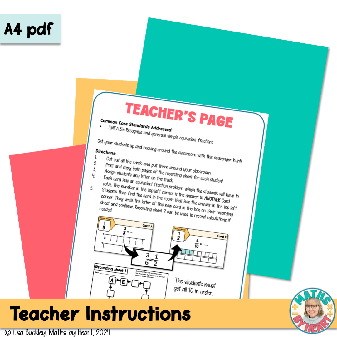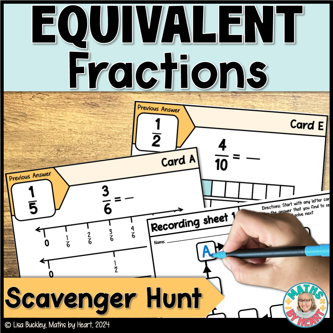 Get your students up and moving around to review equivalent fractions using fraction strips, fraction circles and fractions on a number line. Scavenger Hunts are interactive maths reviews that will engage students in finding answers and reinforce their maths skills in a fun and dynamic way. Transform dull maths lessons into interactive experiences that captivate students’ attention.