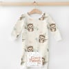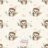 Illustrated in a refined watercolor style, this design brings a calm, cozy, and nature-inspired atmosphere. The soft neutral tones, gentle greenery, and sweet character create a soothing and timeless look—perfect for baby textiles and handmade creations.