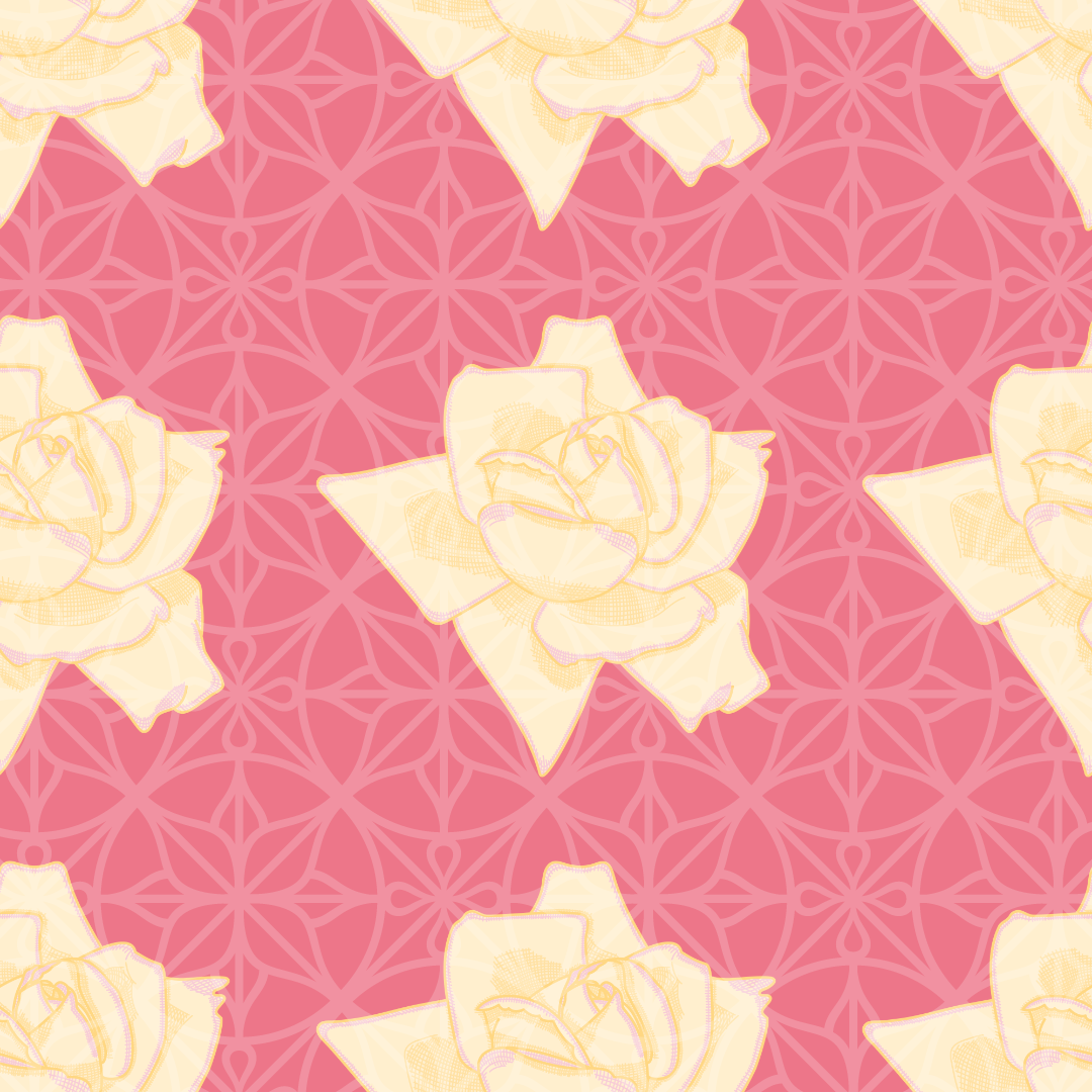 Cross hatching roses vector pattern background. Yellow and Pink floral seamless illustration.
