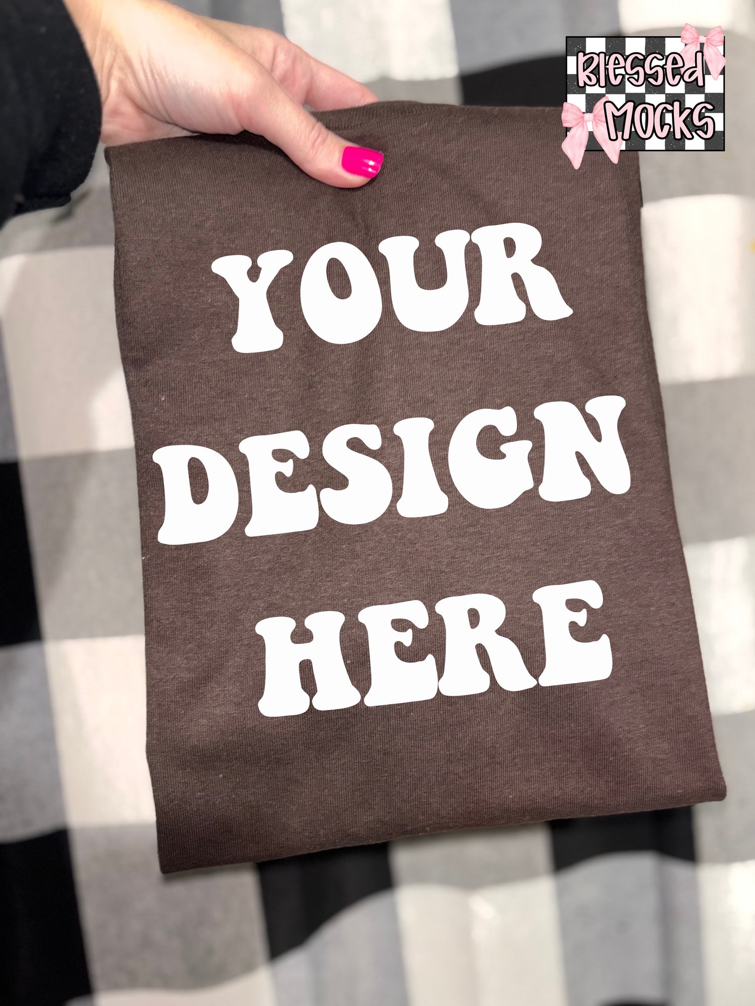 Gildan Dark chocolate Plaid background Mock Up- IRL
