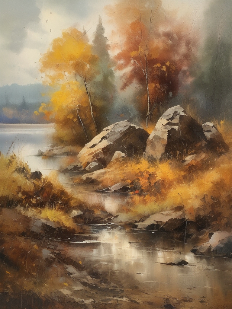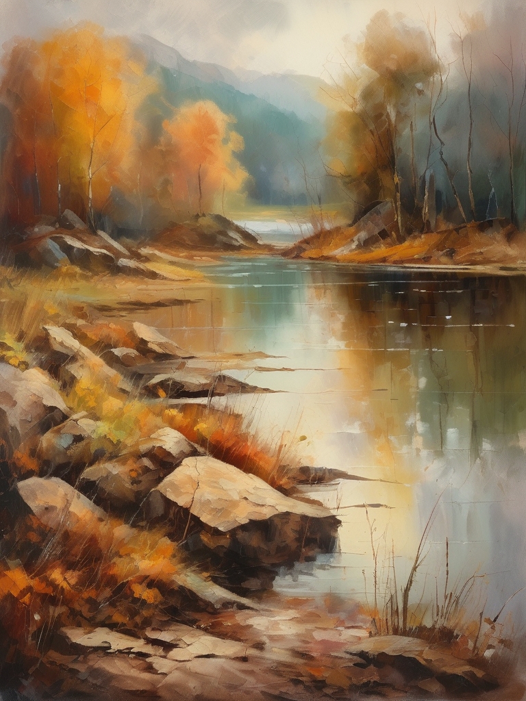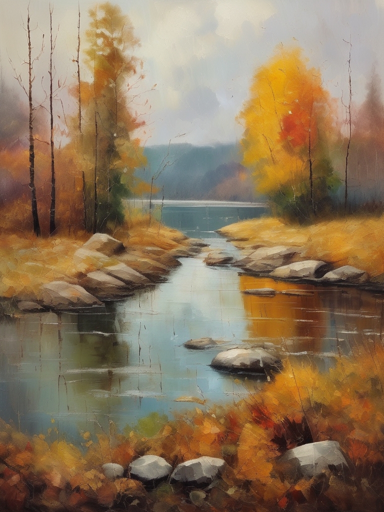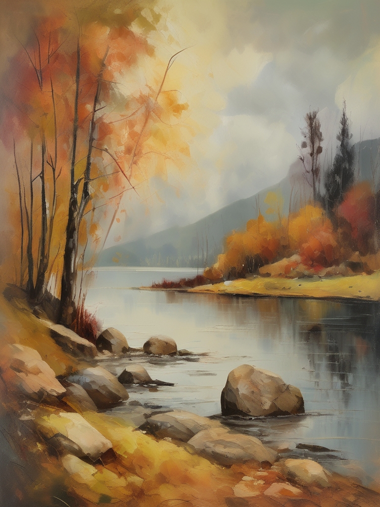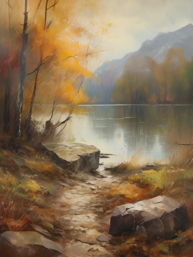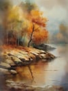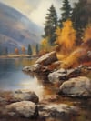 8 wall art paintings,Forest Lake, Autumn Lake, Vintage Oil Painting, Farmhouse Wall Decorations, Antique Landscape, Vintage Landscape Oil Painting.
