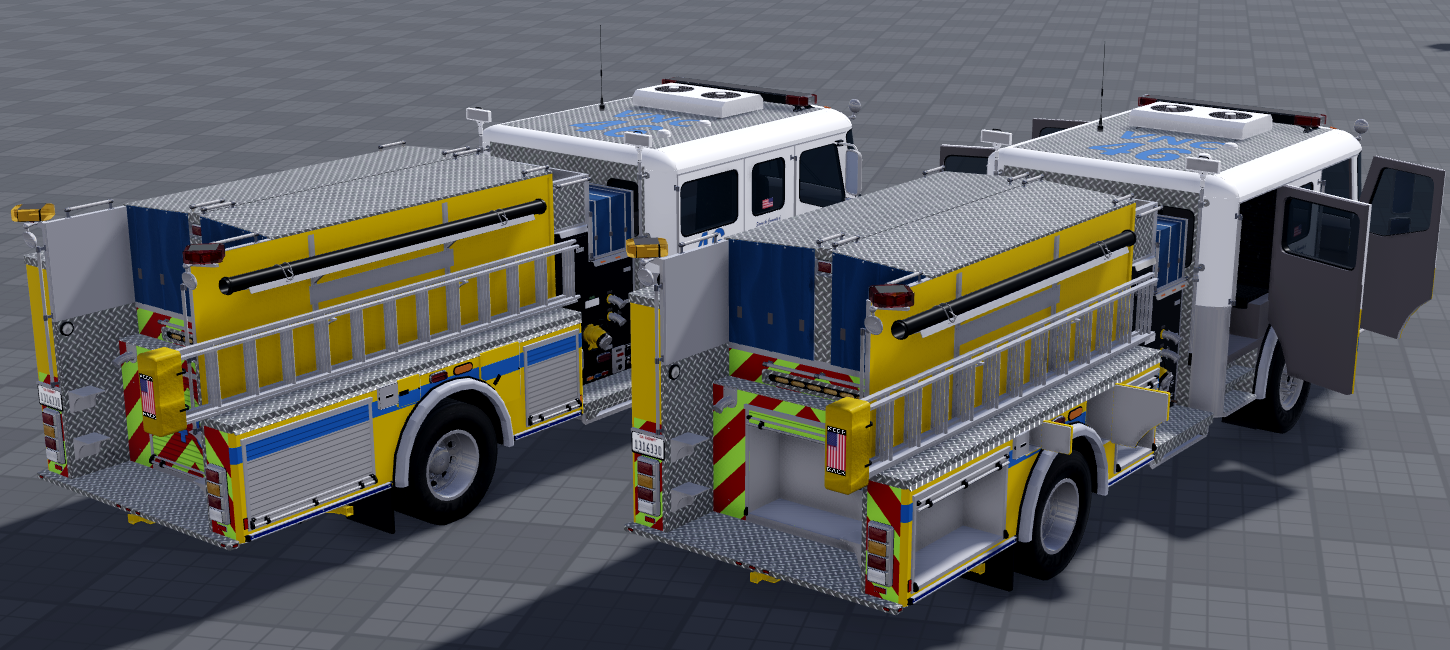 Based off of the Ventura County Fire Department Engine 46 from Simi Valley. The livery and ELS is 99% accurate to real life. This includes 3 stages of ELS and 3 stages of directionals. The vehicle also comes with A-chassis so it isn't static. The vehicle doesn't come with any sirens so you will have to add your own. Each vehicle comes with two variants, one has opening compartments while the other doesn't. These include electronics which consist of headlights, blinkers, brakes, and much more!