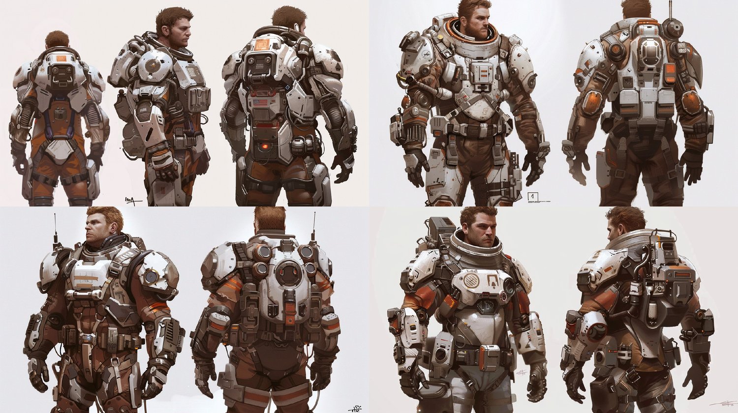Generate a full-body stylized sci-fi astronaut character with this AI prompt, perfect for video game development or stylized 3D modeling.