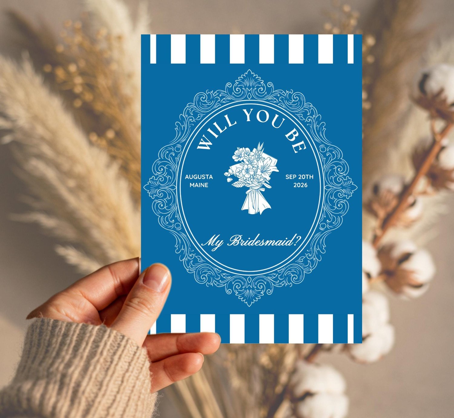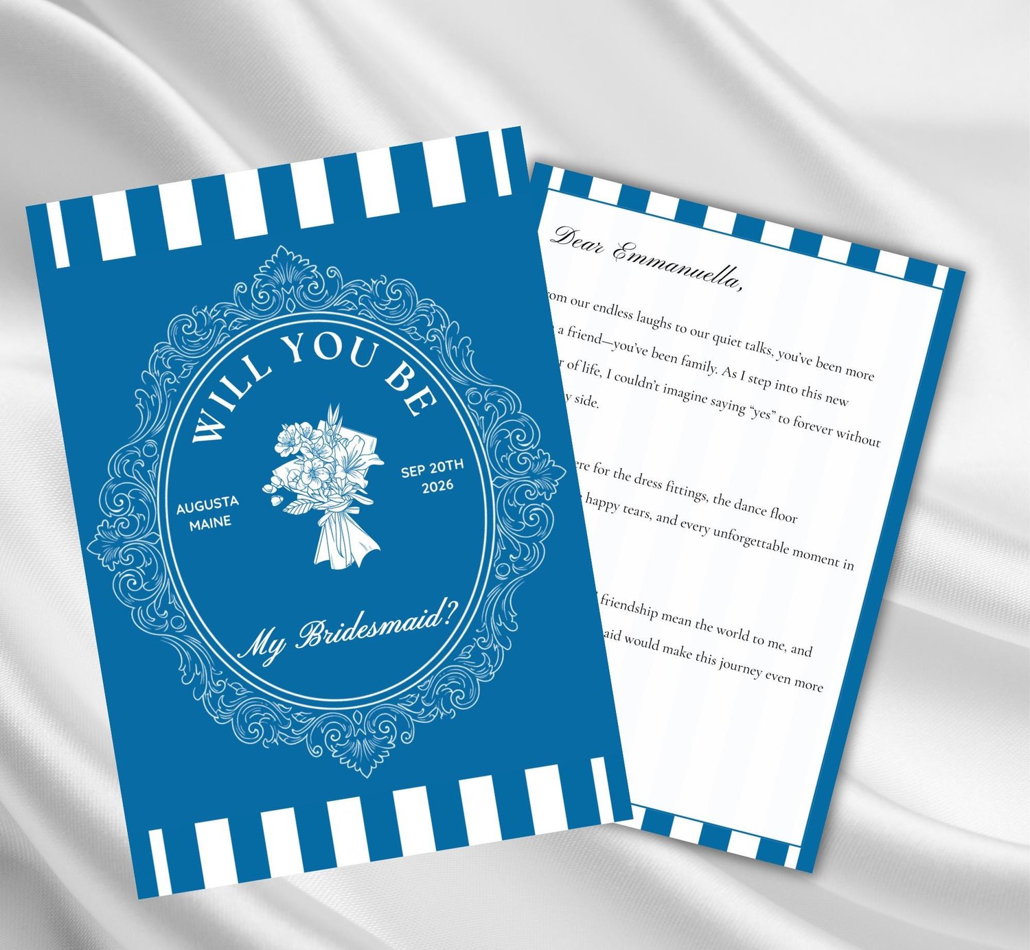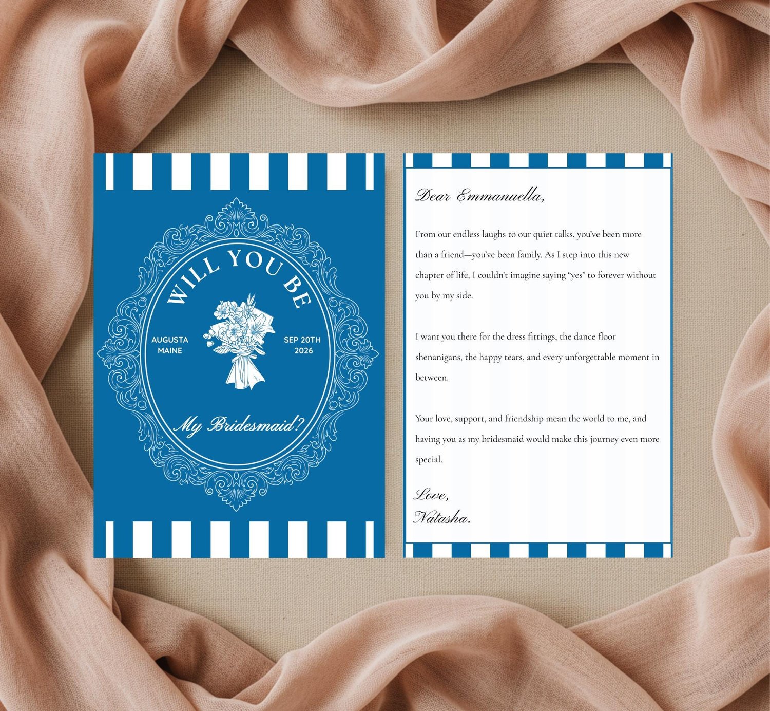 Editable Bridesmaid Proposal Card Template (Front & Inside Design)