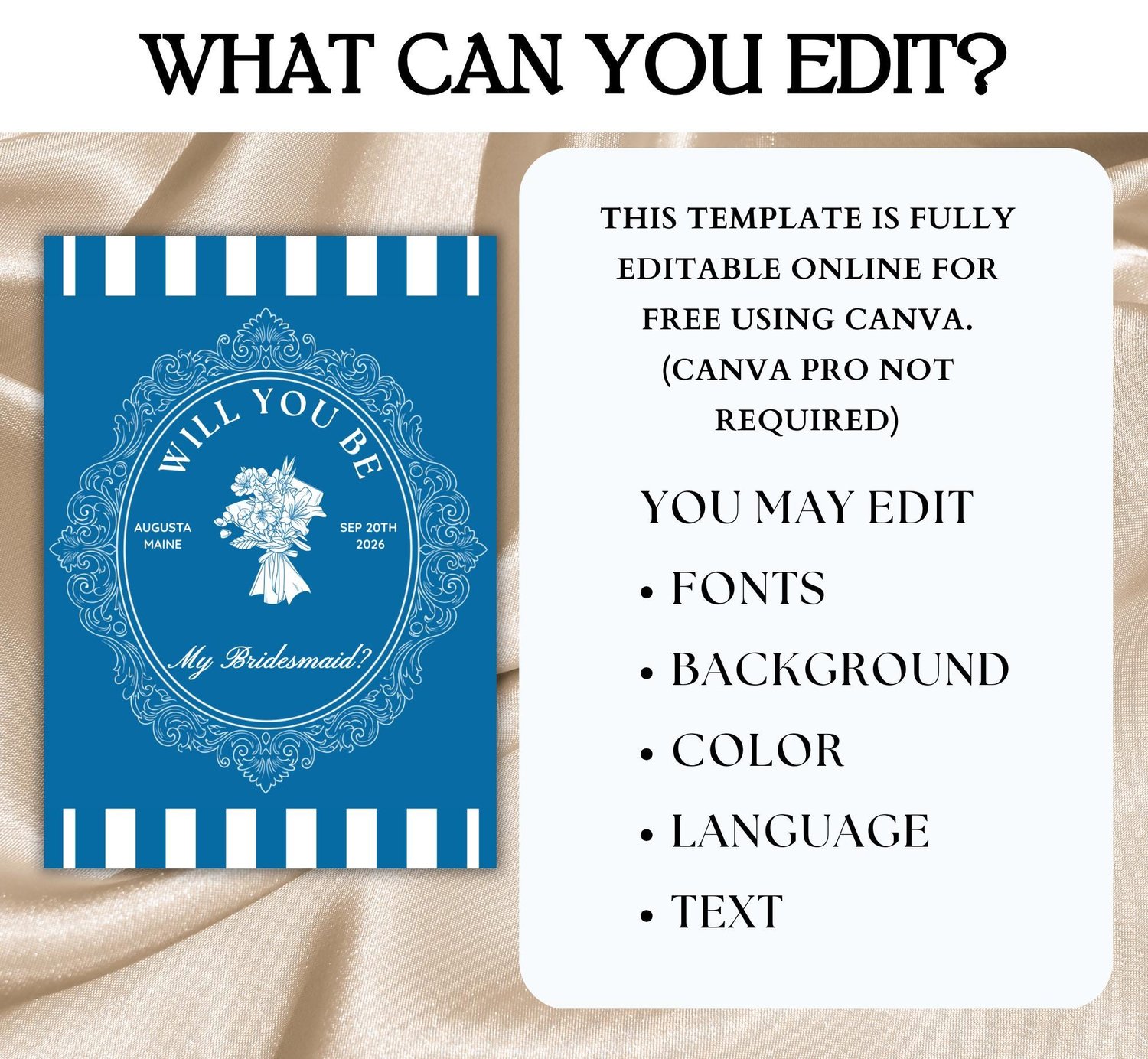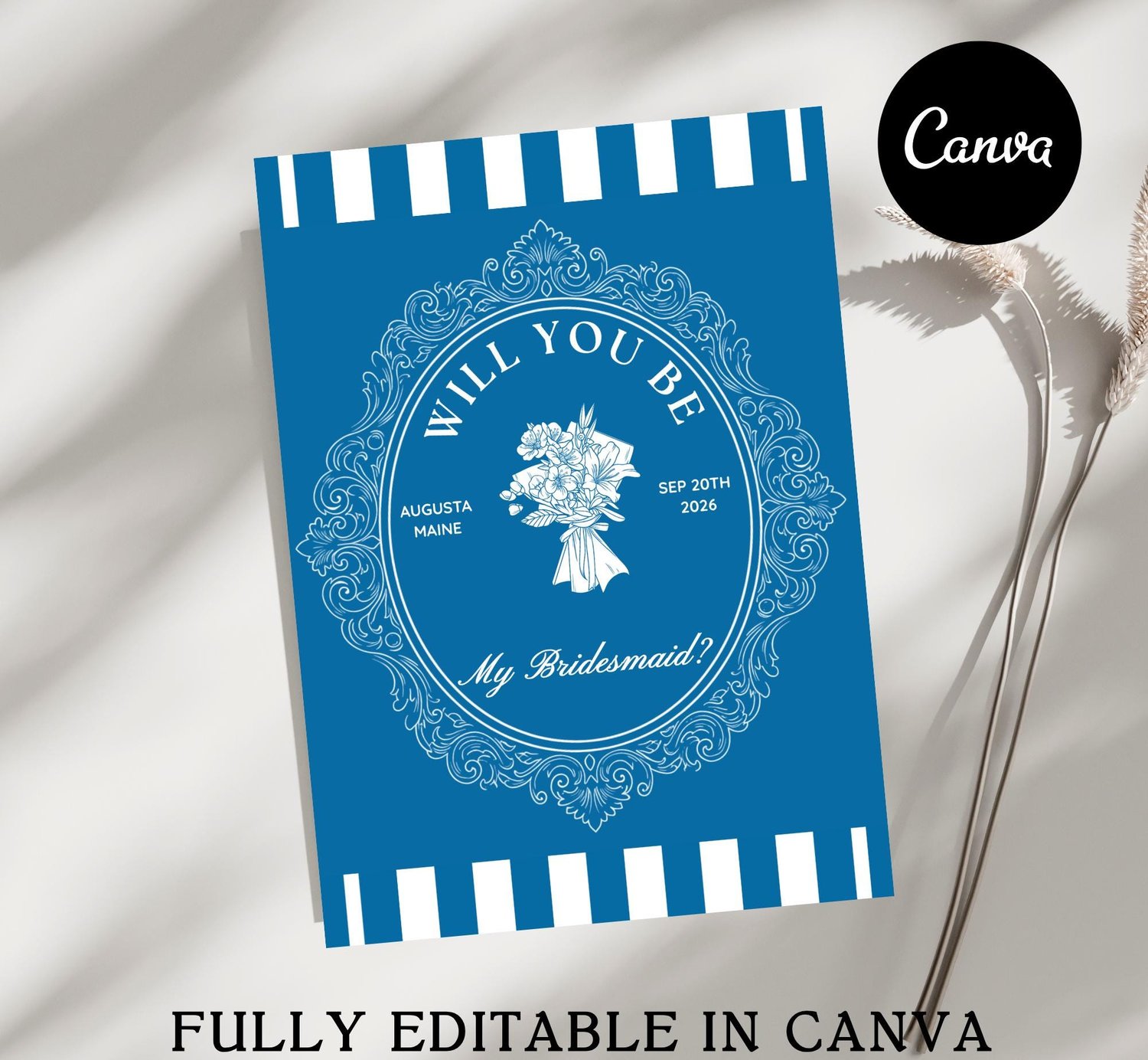 Vintage Bridesmaid Proposal Card, Editable Maid Of Honor Template, Will You Be My Bridesmaid Invite (Digital Download, Canva)