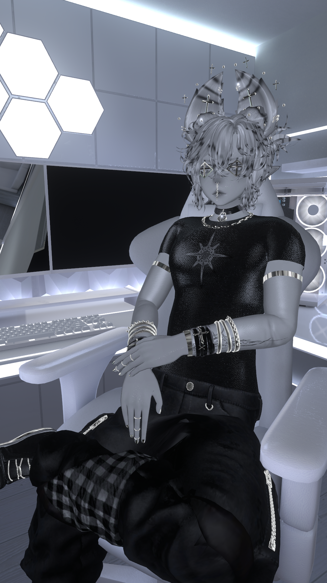Glasses, Ears, Tail, Septum Piercing, Nostril Piercings, Central Eye Piercing, rings: Yinothy // ink - Some things unreleased at this given moment.
