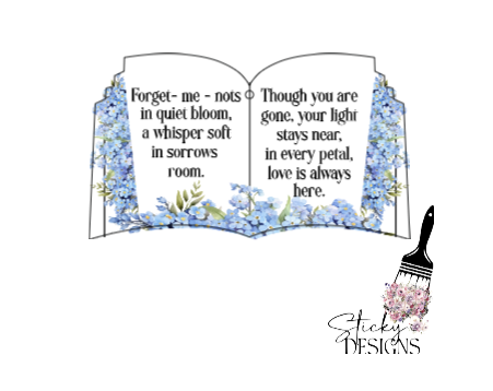 Beautiful hanging acrylic book... 2 x hanging books one with a border and one without, with a poem and forget me nots