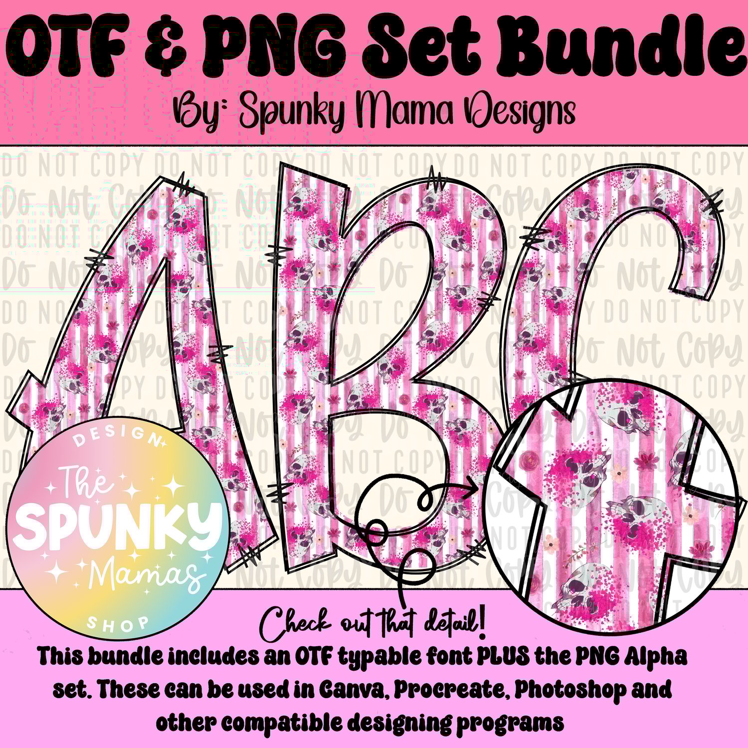 Pink Skulls Digital OTF Font and PNG Alpha Set