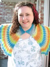 The dripdrop shawl is a rounded wrap featuring drop stitches in meshy areas and long droplets. The bottom edging has a light ripple, like the water is pooling down. It can easily be worn with a shawl pin or open, as the gradual shaping allows it to skim close to the body.