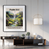Transform your space with this stunning printable wall art featuring the inspirational Bible verse, Psalm 23:2. This beautiful piece depicts a serene landscape with a waterfall and lush greenery, accompanied by the comforting words of Psalm 23:2: "He makes me to lie down in green pastures; He leads me beside the still waters."