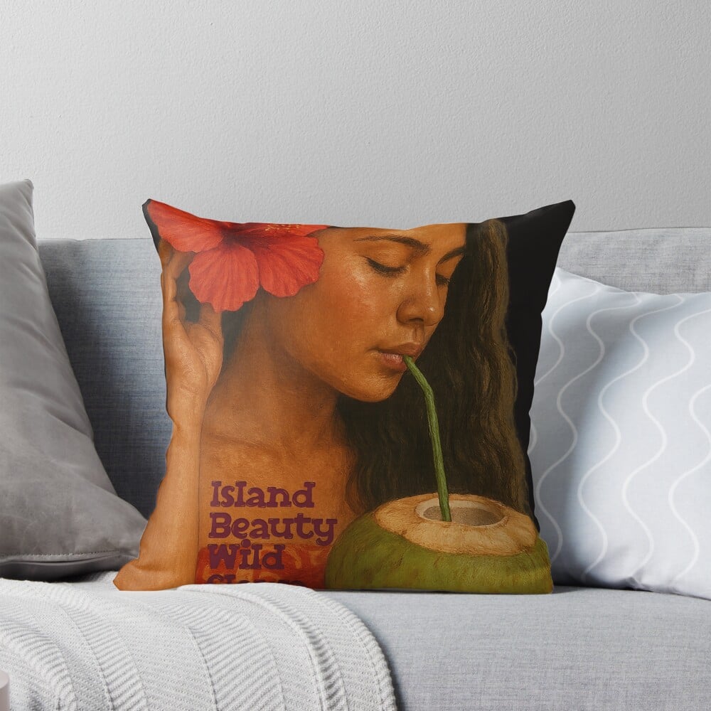 Celebrate the spirit of the Pacific with this stunning design featuring a radiant island woman sipping coconut juice, adorned with a hibiscus bloom and wrapped in tropical elegance.
