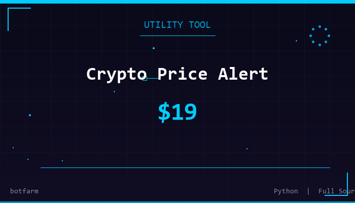 Real-time cryptocurrency price monitoring bot. Track any coin on CoinGecko/CoinMarketCap with custom price thresholds. Get instant alerts via Discord, Telegram, email, or SMS when prices hit your targets. Supports percentage changes, volume spikes, and RSI-based alerts. Runs 24/7 with configurable check intervals. Python 3.8+ required.