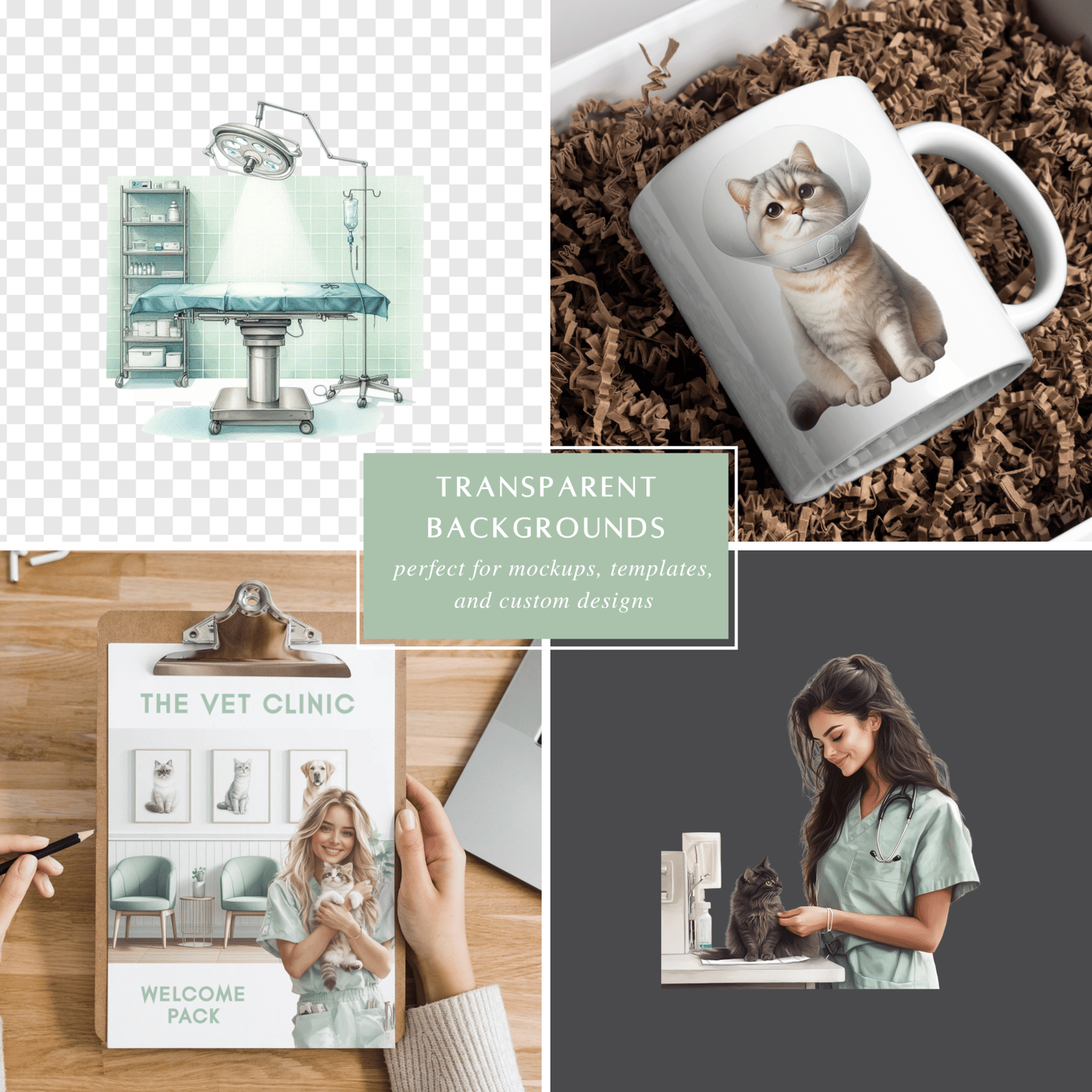 Bring your creative veterinary projects to life with this Vets Clinic Clipart Set. Featuring 40 high-resolution PNG illustrations, this collection includes adorable pets (dogs, cats, rabbits, reptiles), essential vet tools (stethoscopes, syringes, scrubs), and clinic scenes. Perfect for veterinary branding, pet care planners, animal rescue graphics, and educational resources. All images come with transparent backgrounds for easy layering and design flexibility.