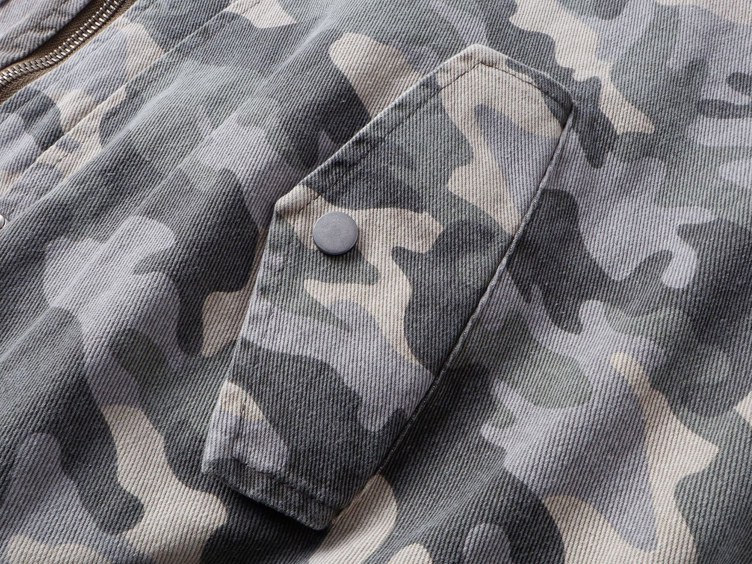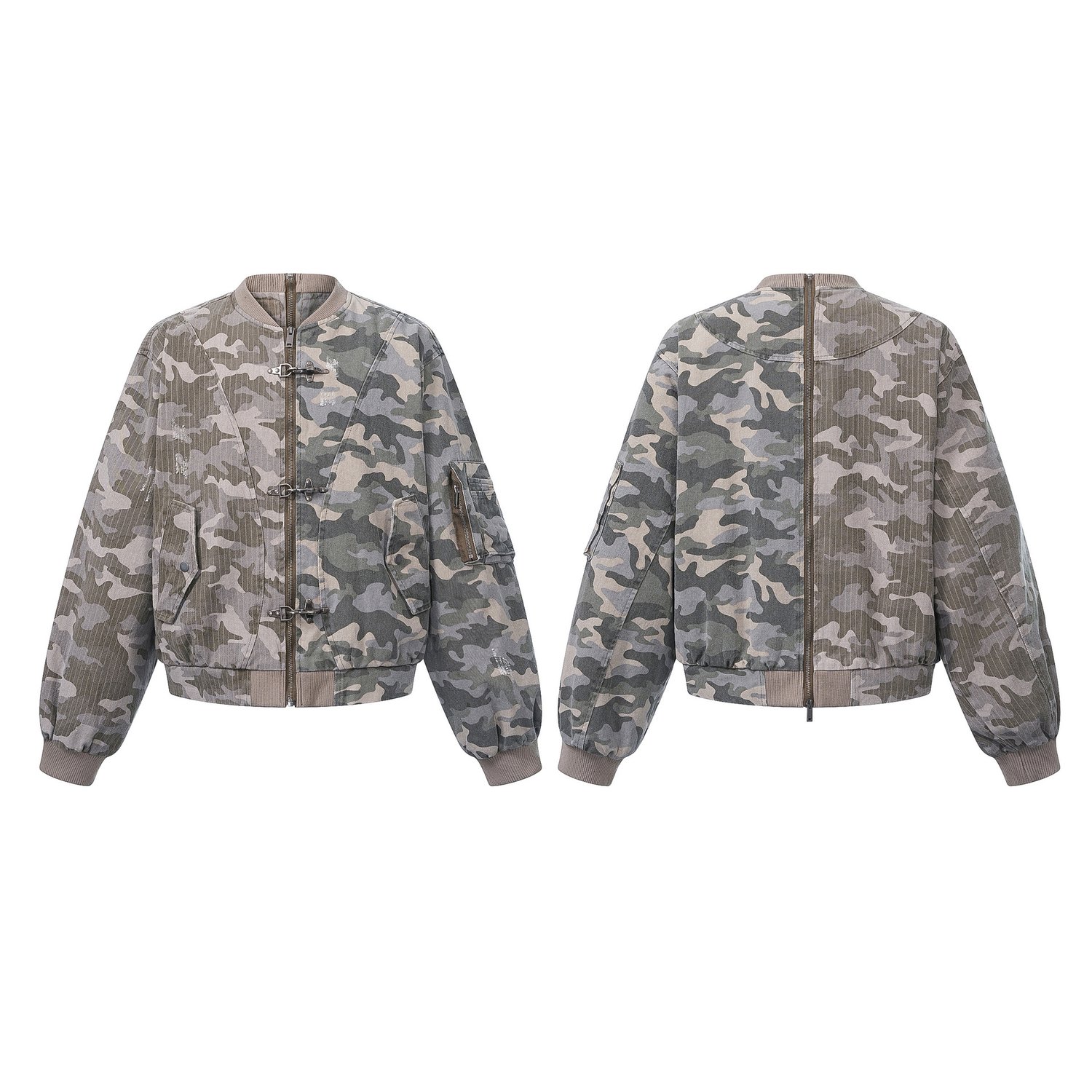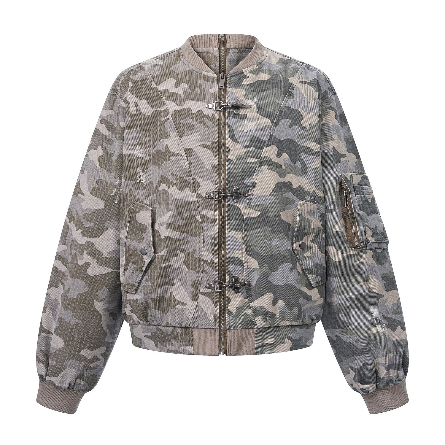 Streetwear retro camouflage green plane buckle zipper unisex jacket