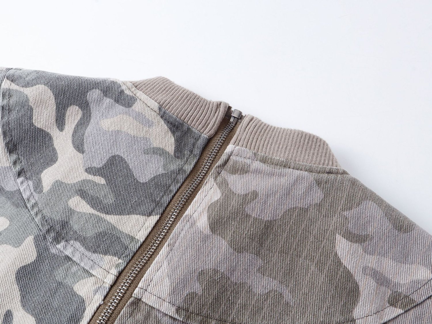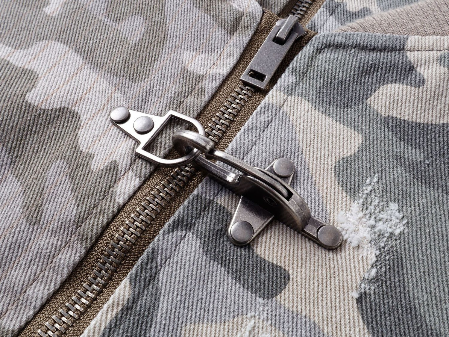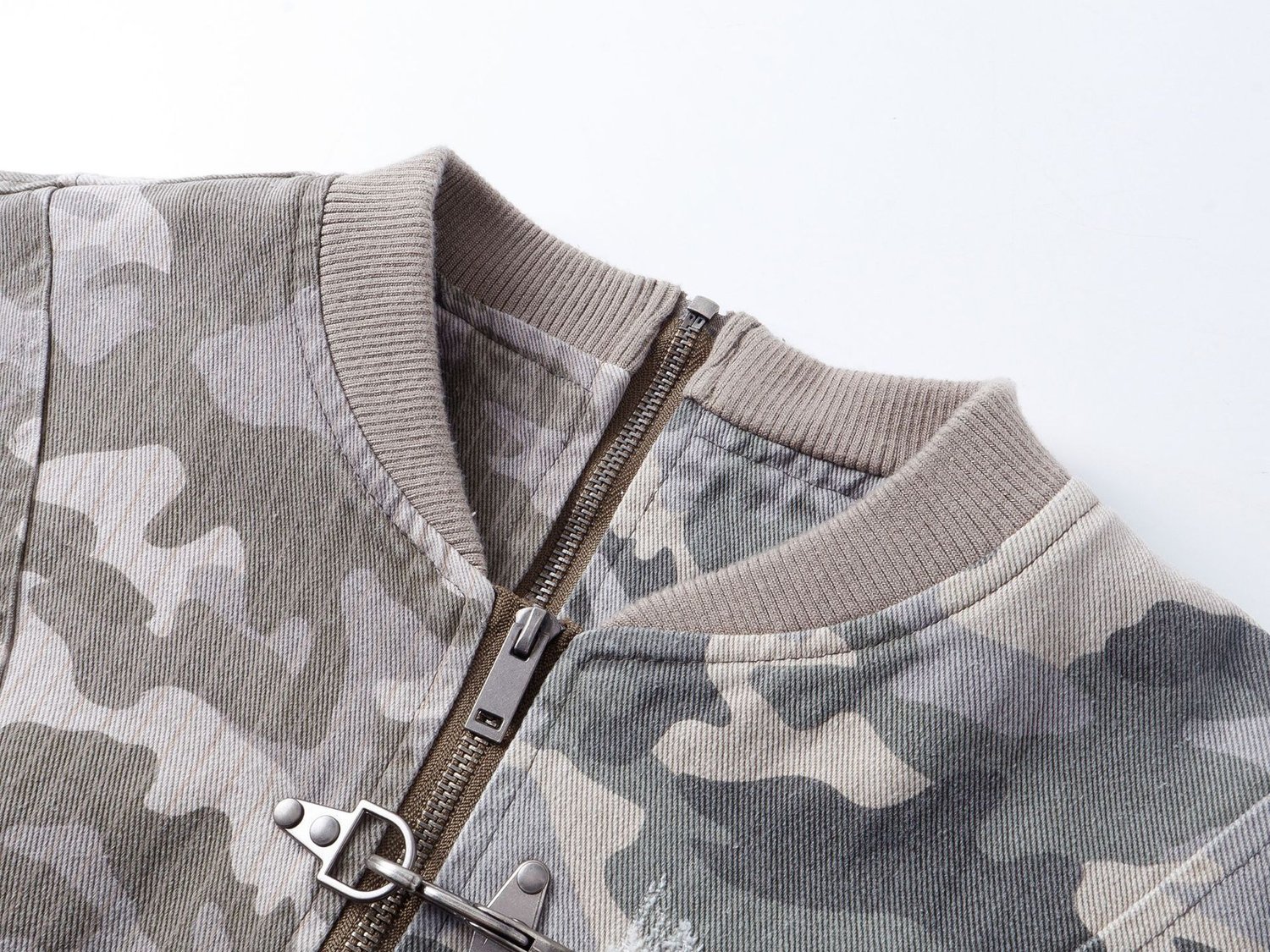 Streetwear retro camouflage green plane buckle zipper unisex jacket