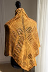 This top-down triangular shawl was inspired by the dazzling stained glass windows in the small church of Sainte Chapelle in Paris. The tall narrow windows dominate the richly-decorated chapel.
