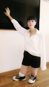 On roads without obstacles, she sits on an electric skateboard and moves slowly.