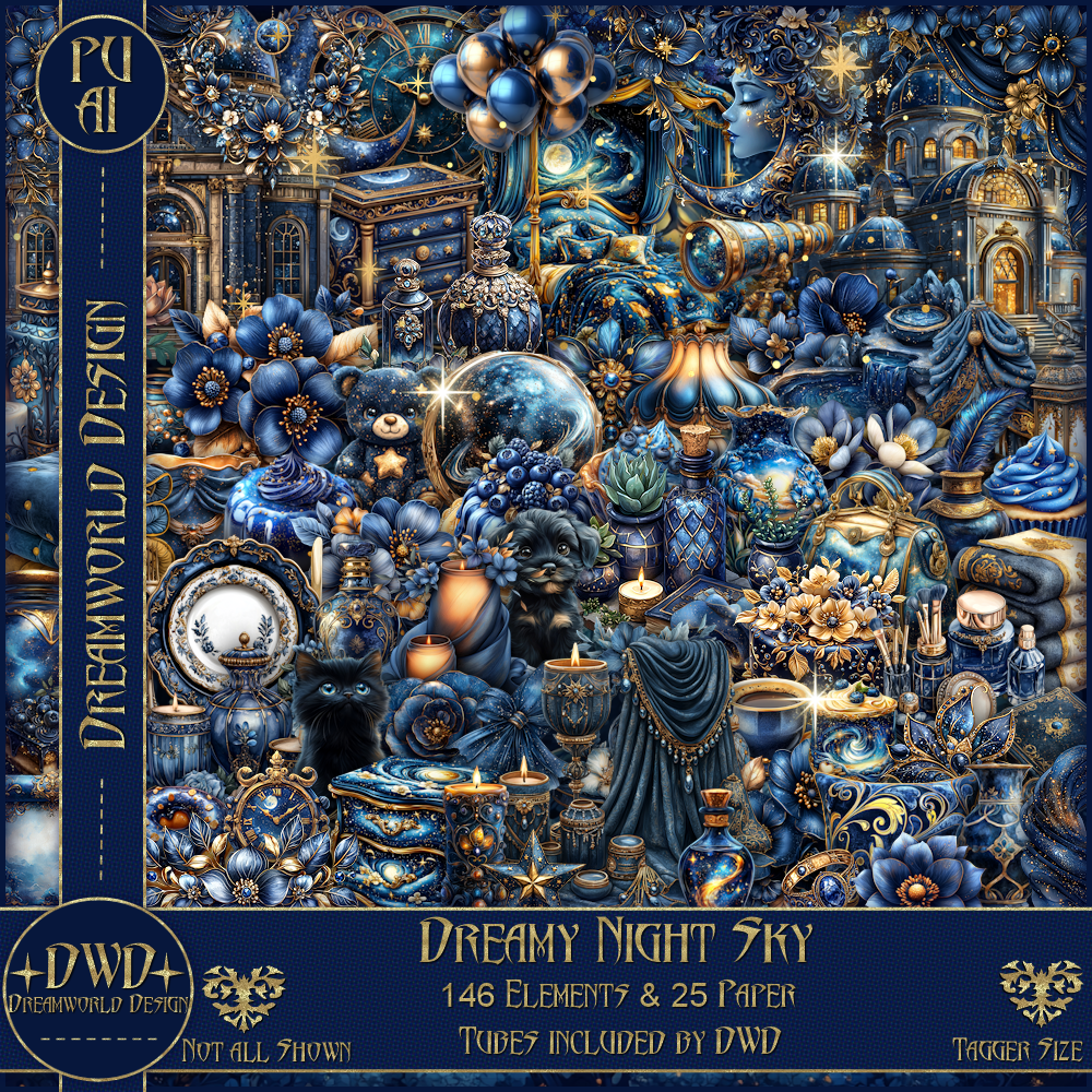 *Dreamy Night Sky* is a tagger-size kit with 146 elements & 25 papers.
