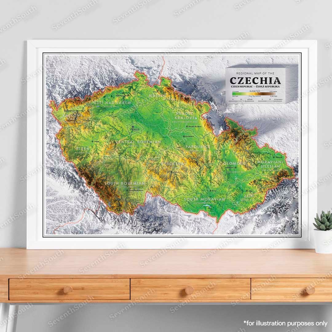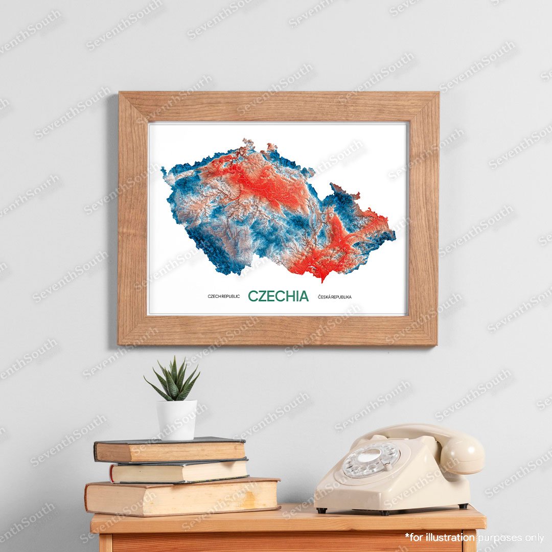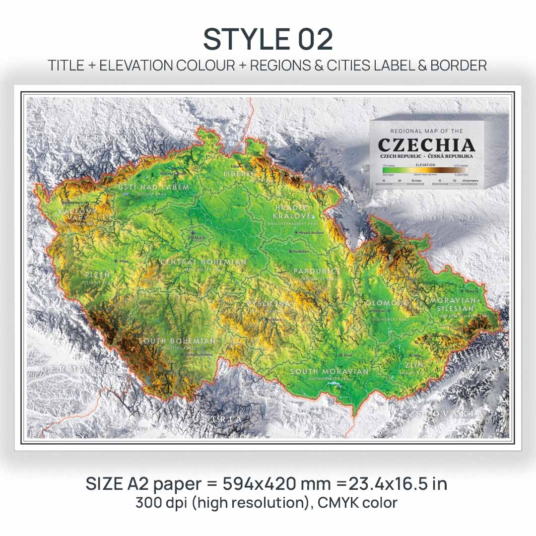 CZECHIA Czech Republic Ceska relief maps, printable, A2 paper size, 23.4x16.5 in, 300 dpi, 4 styles