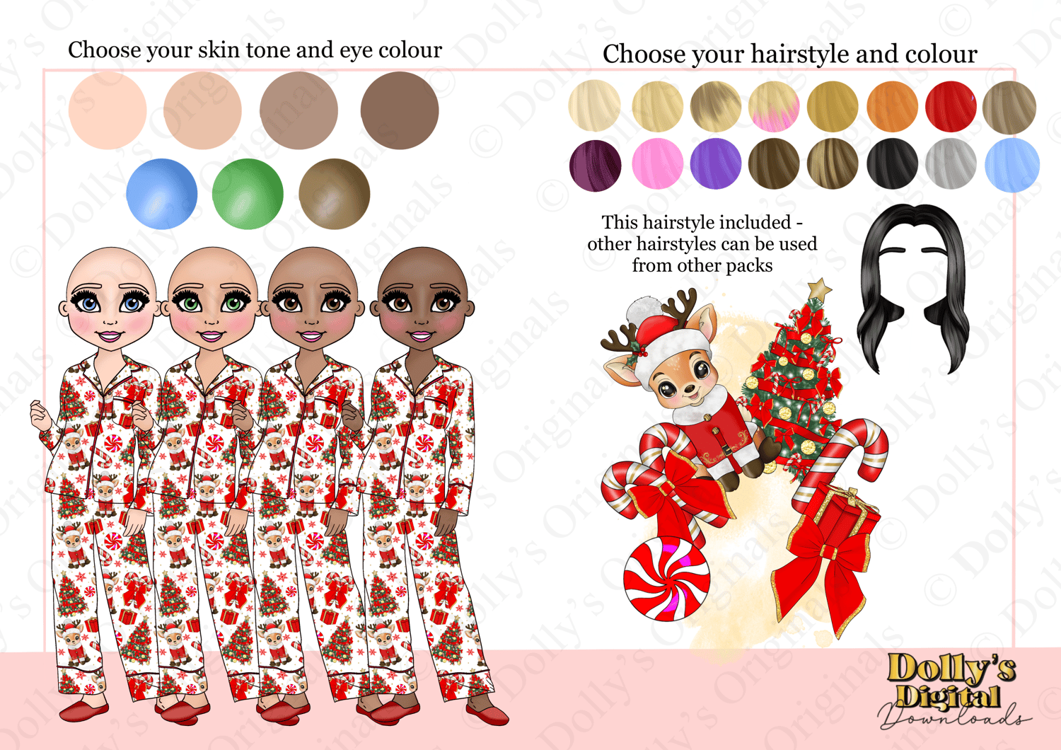 Instant digital download of our Red Nutcracker Pyjamas Christmas Dolly Pack PNG (33 PNG’s included)