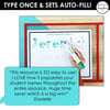 The activities are editable with an auto-fill option, allowing teachers to simply enter their class list and automatically generate personalized worksheets for every student.