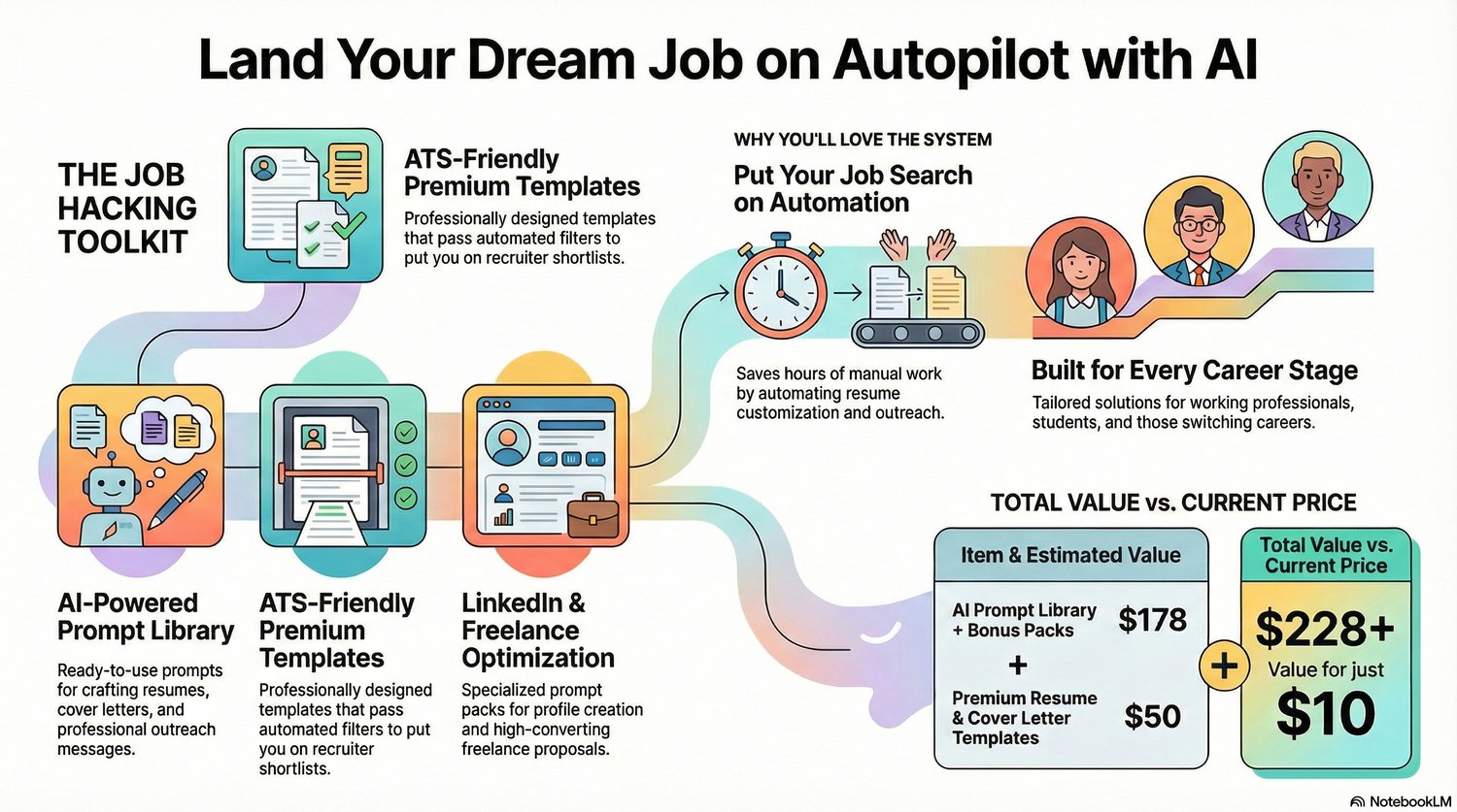 – Land Your Dream Job Smarter, Faster & Stress-Free! Tired of sending hundreds of applications and hearing nothing back? Meet your all-in-one AI-powered job hacking kit designed to help working professionals, freshers, and students stand out and get hired – faster than ever before!