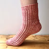 The pattern is written for 3 adult sizes and video tutorials are provided for the stitches and techniques used to make the socks.