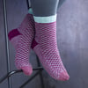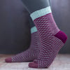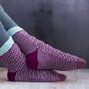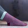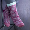The Petite Pavement socks are a very simple knit and purl pattern but they use 3 colours of yarn to create an interesting effect. The small "blocks" are like tiny cobblestone blocks. Have fun combining colours and create your own version.