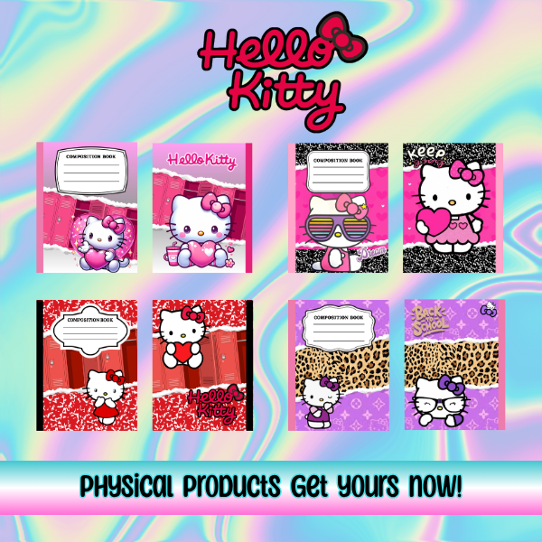 Add a pop of cuteness and charm to your school supplies with our Hello Kitty Composition Notebook Collection – perfect for kids who love playful designs, sweet styles, and everyone’s favorite bow-wearing icon!