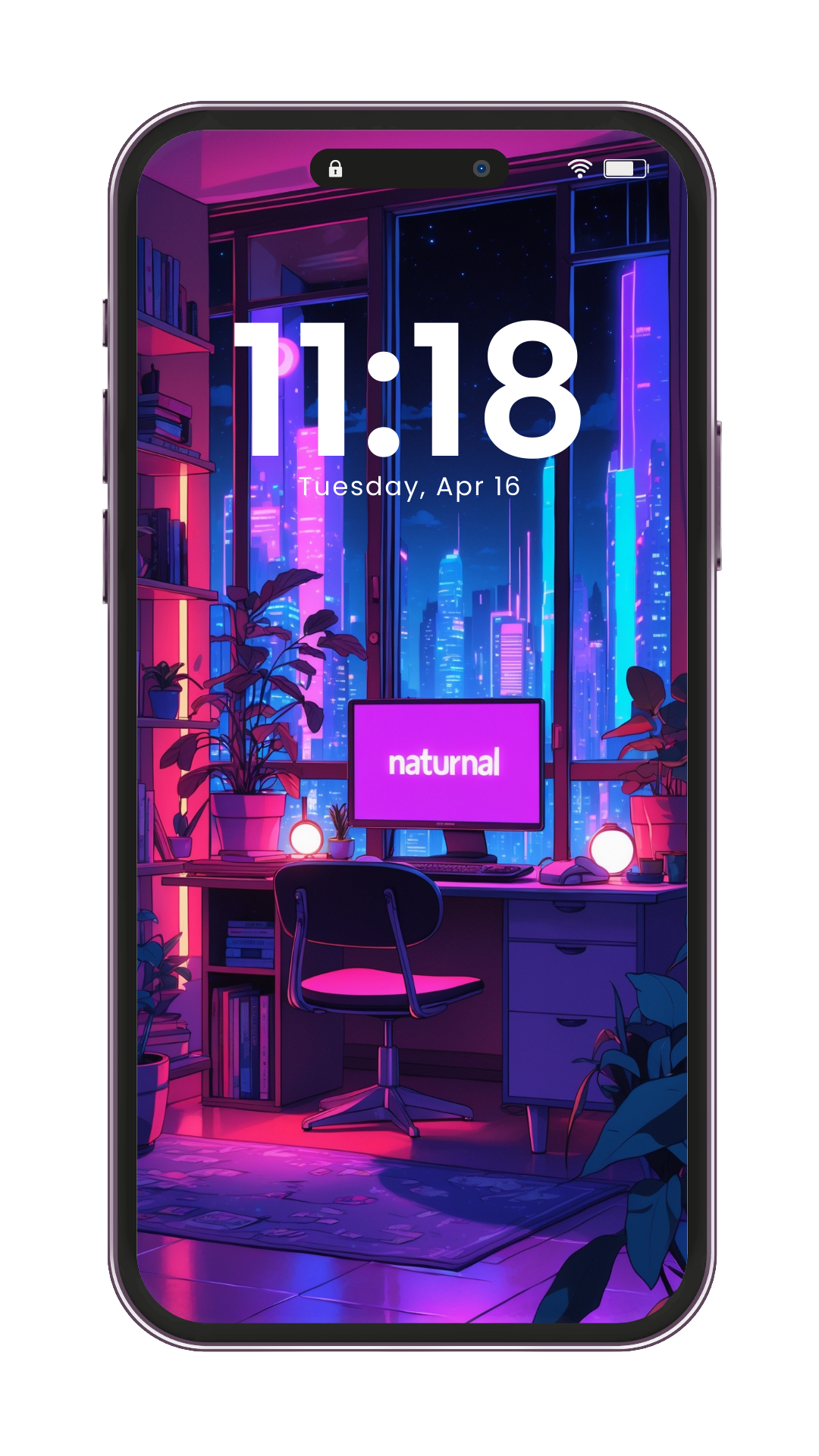 Get this wallpaper if you love cyberpunk, neon led lights, and a relaxing night at home. Like self-care for your phone.
