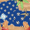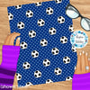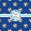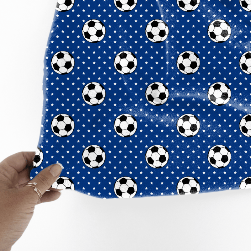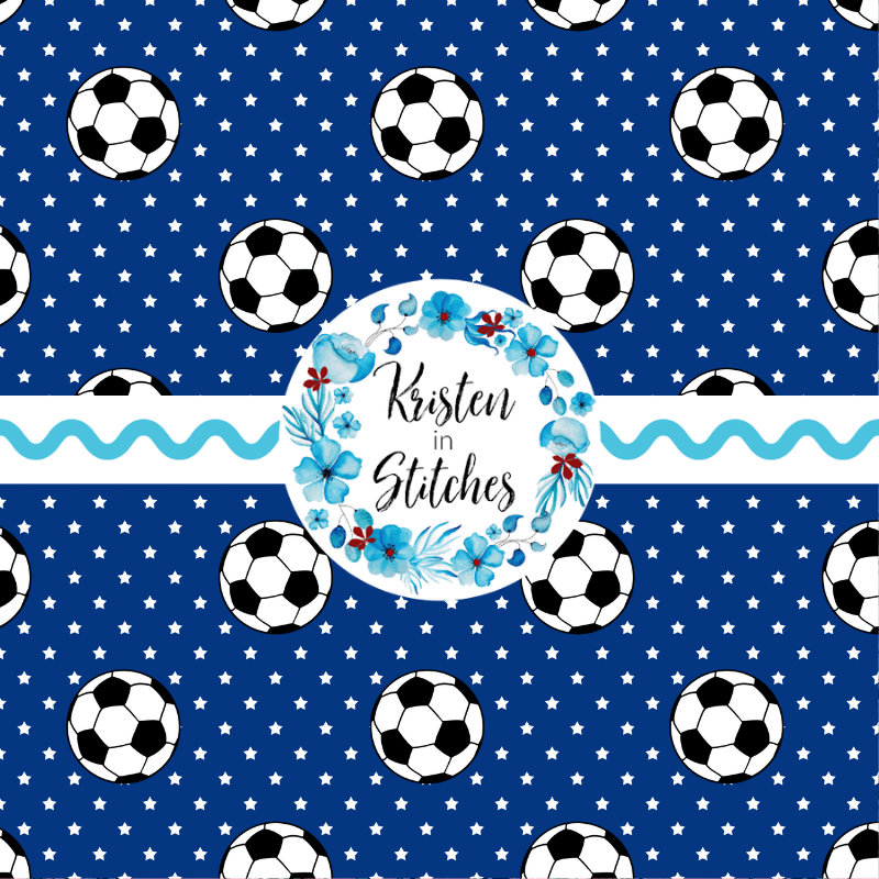 Soccer balls and stars in blue and white.