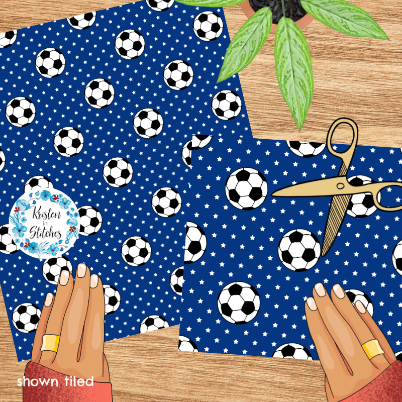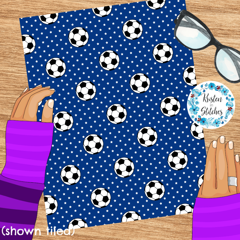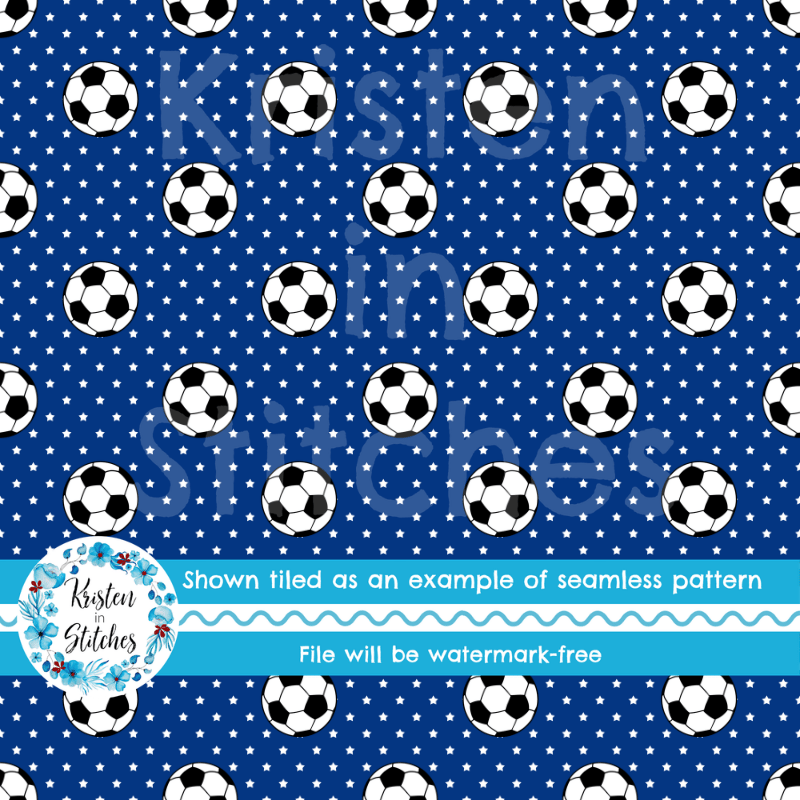 Soccer Balls and Stars Seamless Pattern, Team Canada, Team USA Colors Blue White