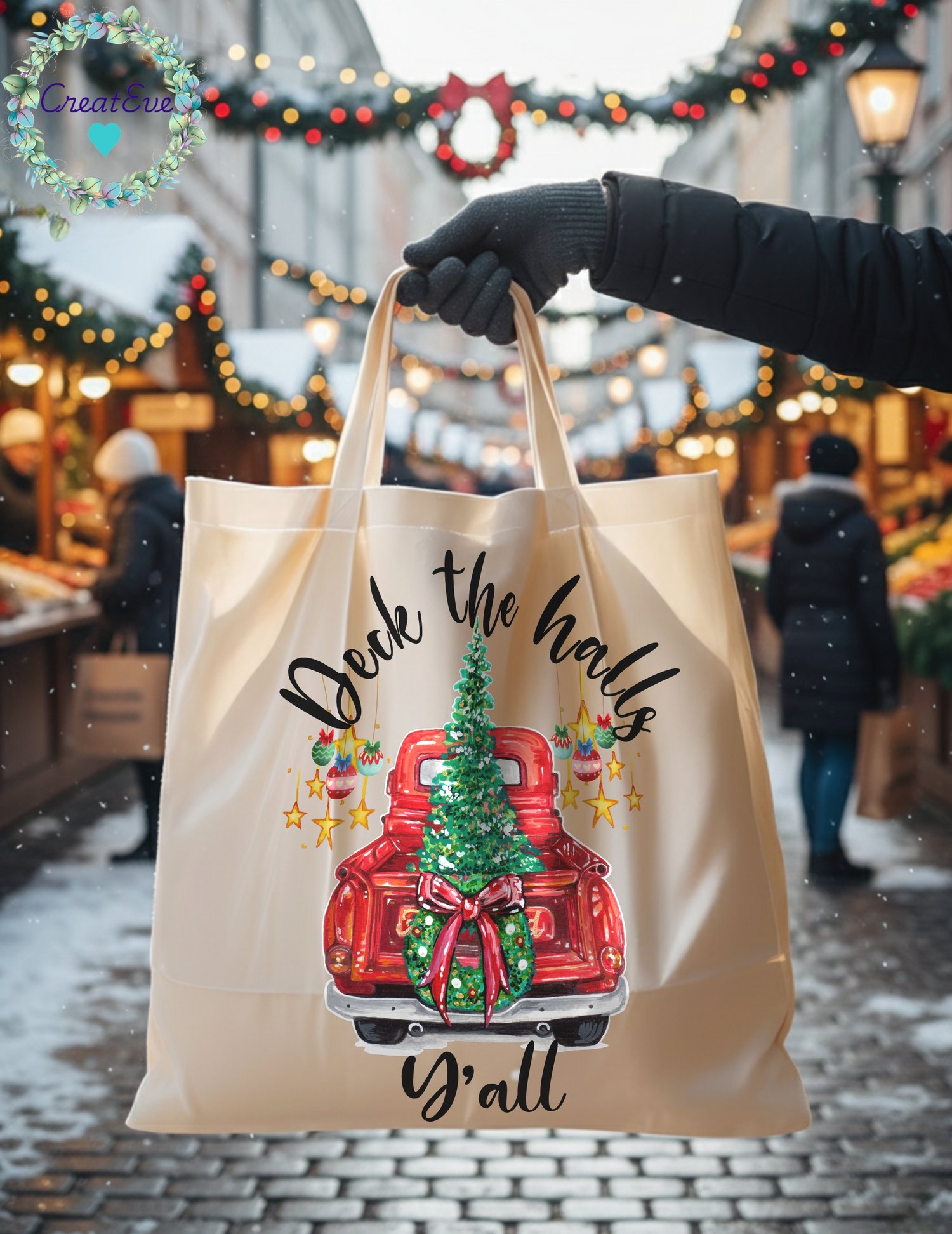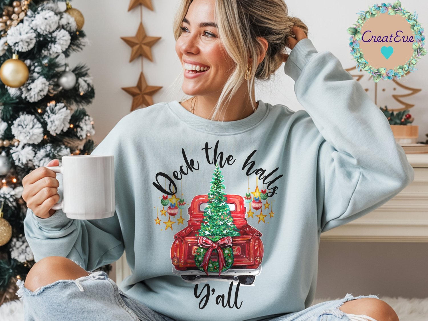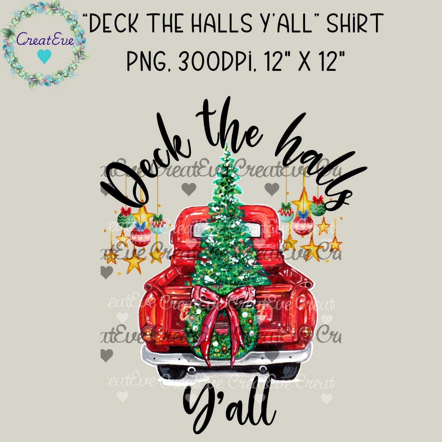 Christmas Vintage Truck Tshirt PNG "Deck the halls y'all" 300dpi, 12"x12"