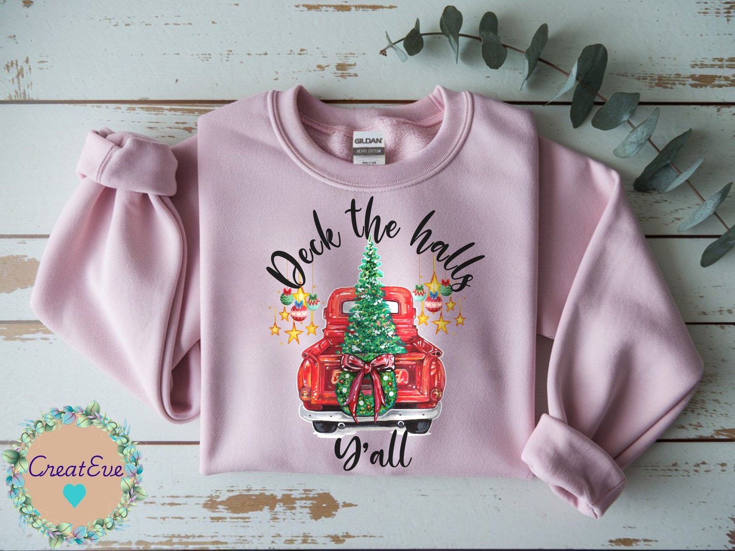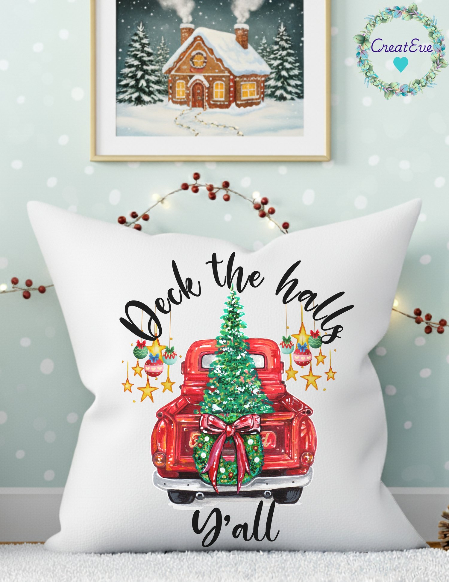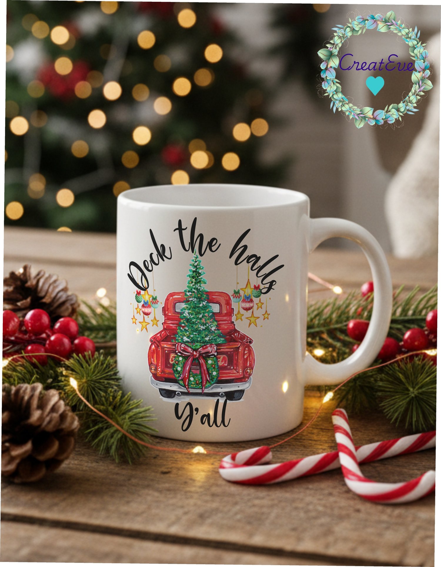 Christmas Vintage Truck Tshirt PNG "Deck the halls y'all" 300dpi, 12"x12"