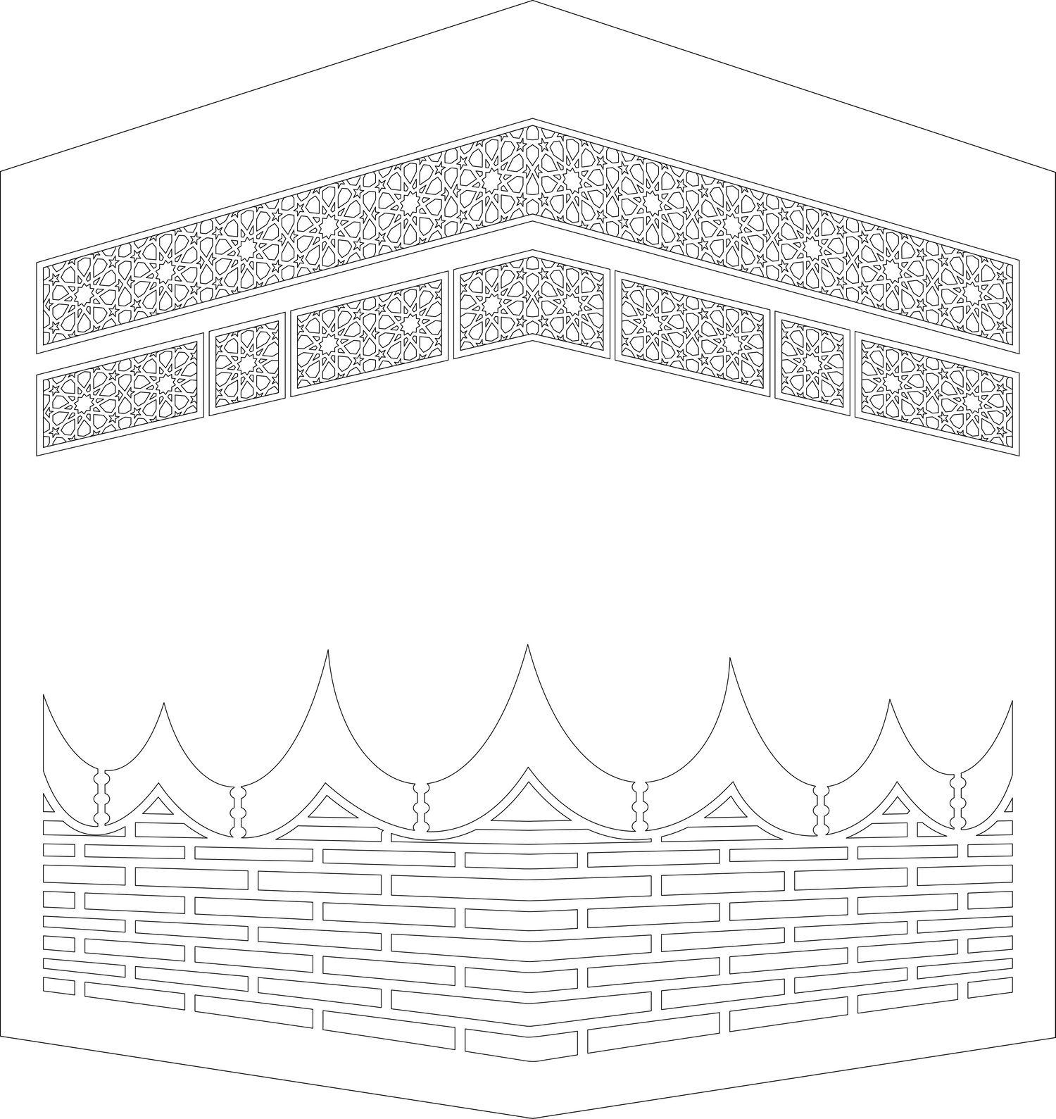 This Khana Kaaba with First Kalma design, offered by Rabt Group, is a beautiful and meaningful representation of Islamic heritage. Combining the revered Khana Kaaba with the powerful words of the First Kalma (Tayyab), “La ilaha illallah Muhammadur Rasoolullah,” this design brings together sacred architecture and spiritual calligraphy in a harmonious and visually stunning way. Whether you're working on gates, panels, wall hangings, or any other decorative project, this design adds a sense of peace, devotion, and elegance to your space.