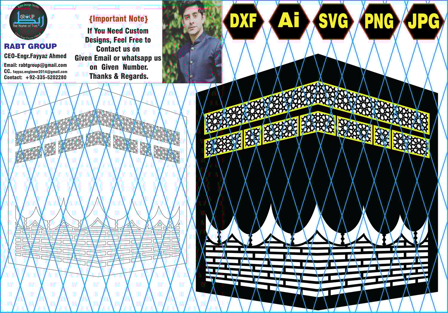 🌙 Add Spiritual Elegance to Your Projects with the Khana Kaaba and First Kalma Design from Rabt Group! 🌙