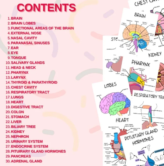 This pack includes a complete set of 30 anatomy flashcards.
