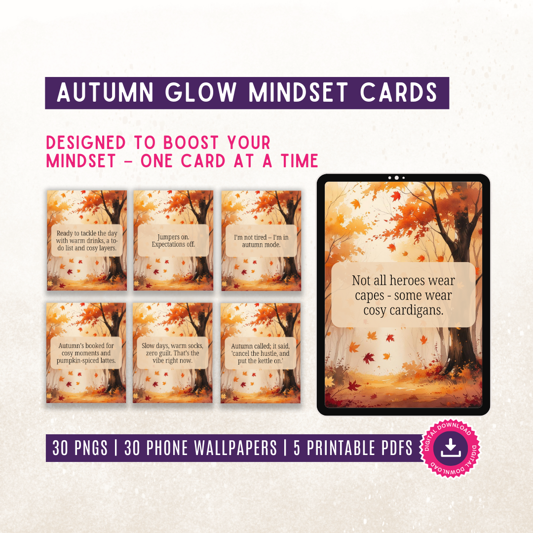 Autumn Glow Mindset Cards – Printable PDF + Phone Wallpapers