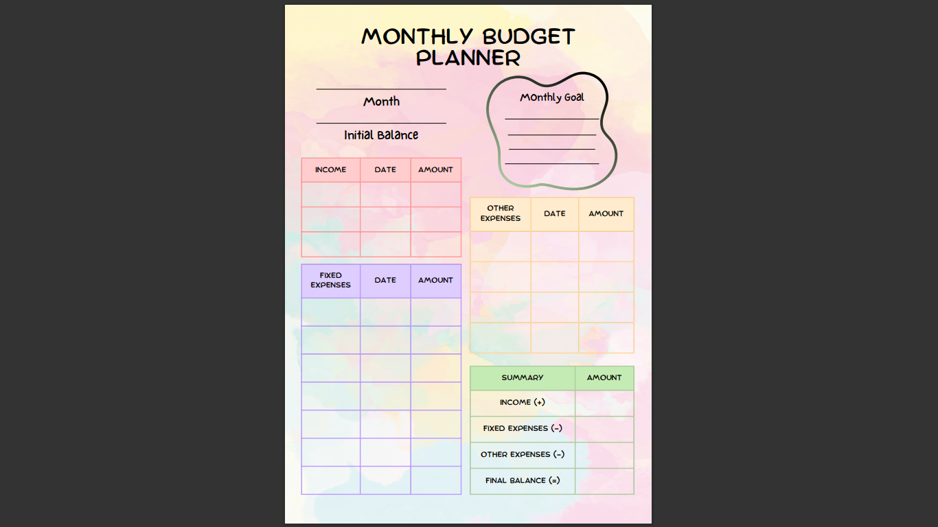 Transform your financial management with our Monthly Budget Planner! Whether you're saving for a big purchase, managing household expenses, or simply looking to take control of your finances, our planner is designed to help you achieve your financial goals.