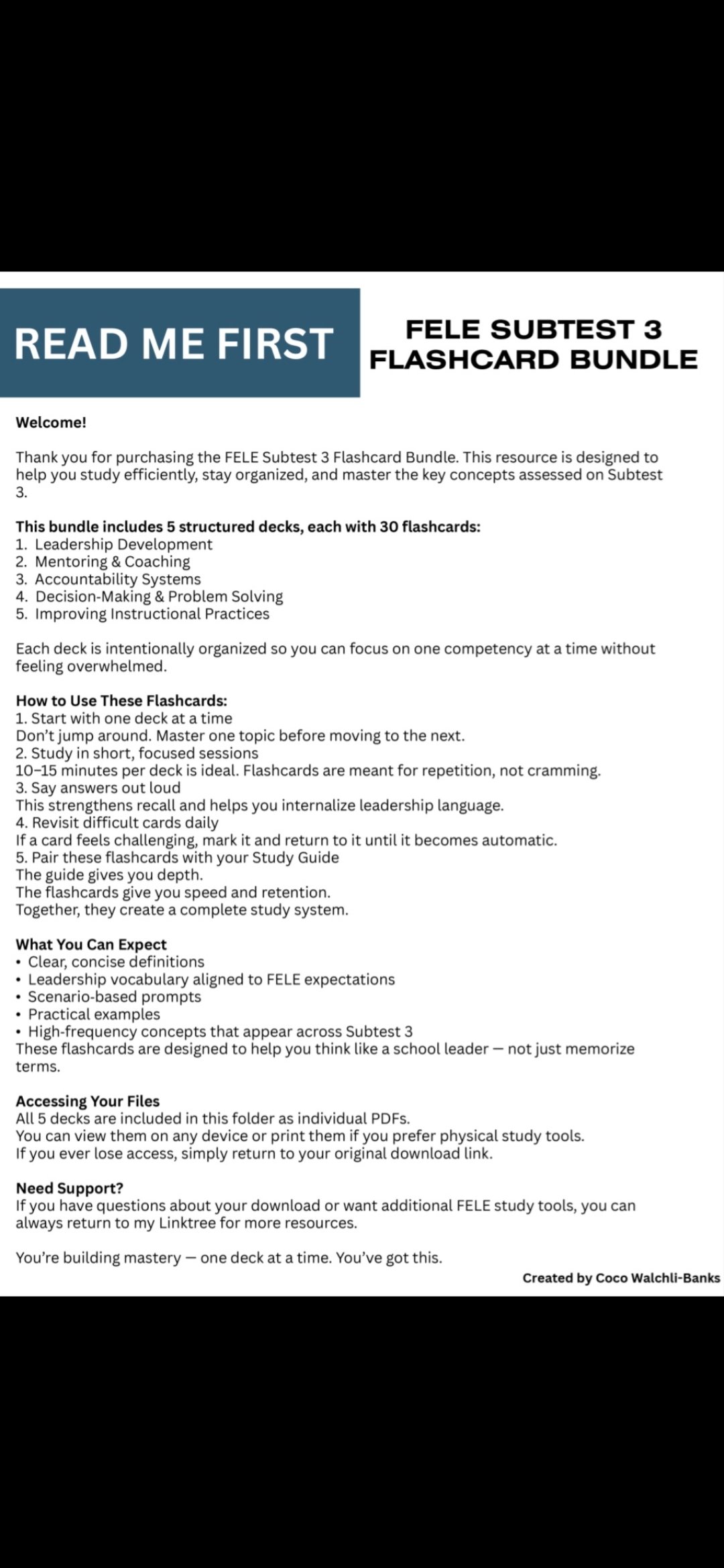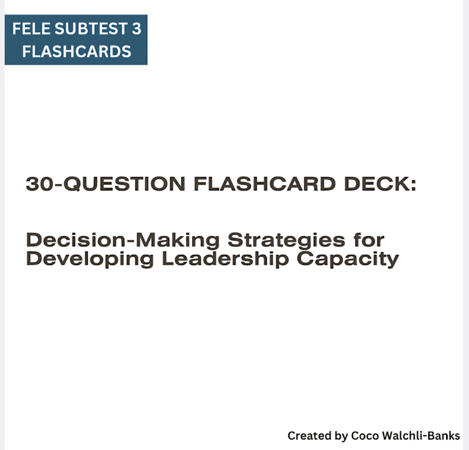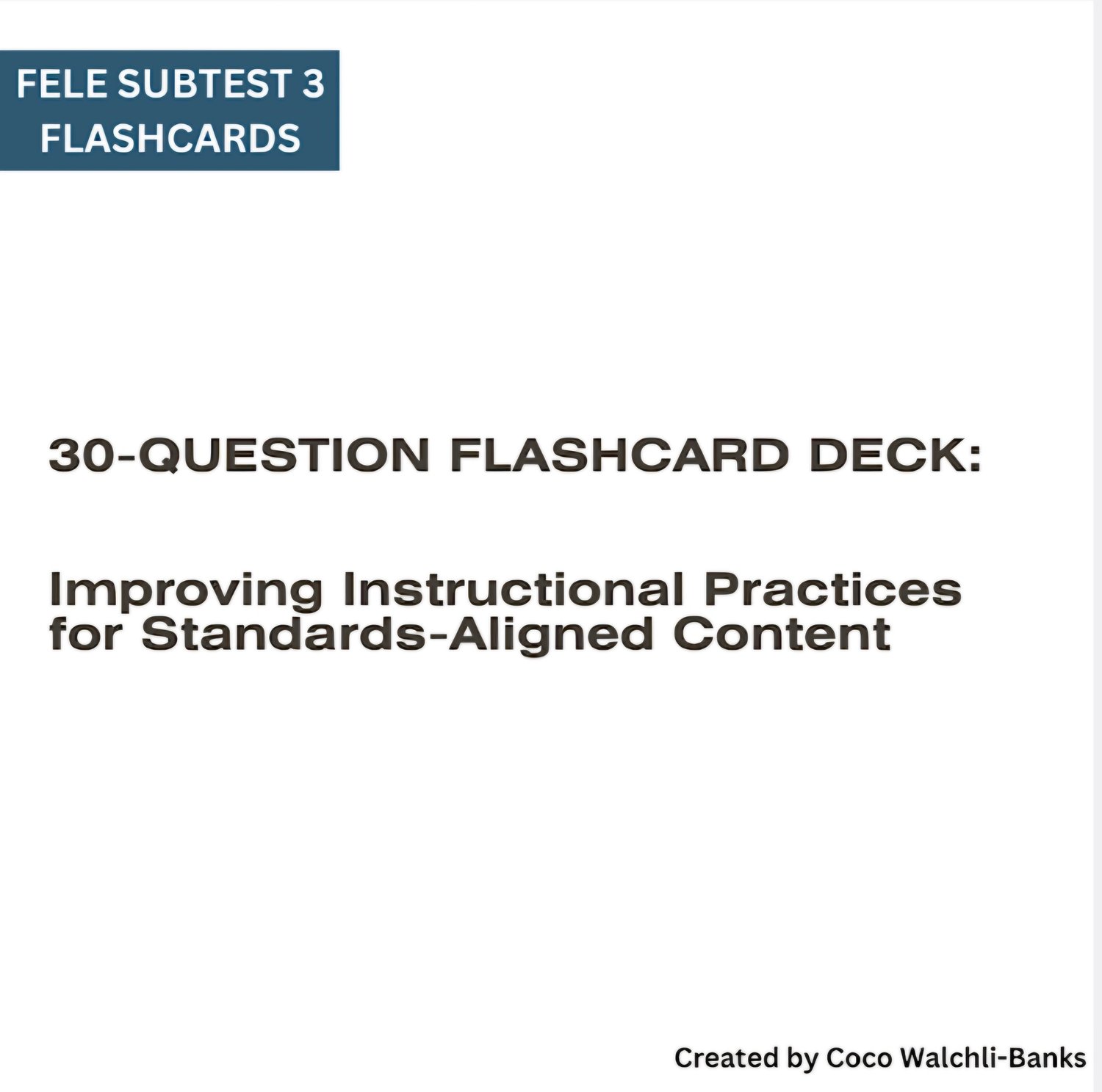 A structured, easy‑to‑study flashcard system designed to help you master the key concepts in FELE Subtest 3. This bundle includes multiple decks of 30 flashcards, each organized by topic so you can study with clarity and confidence.