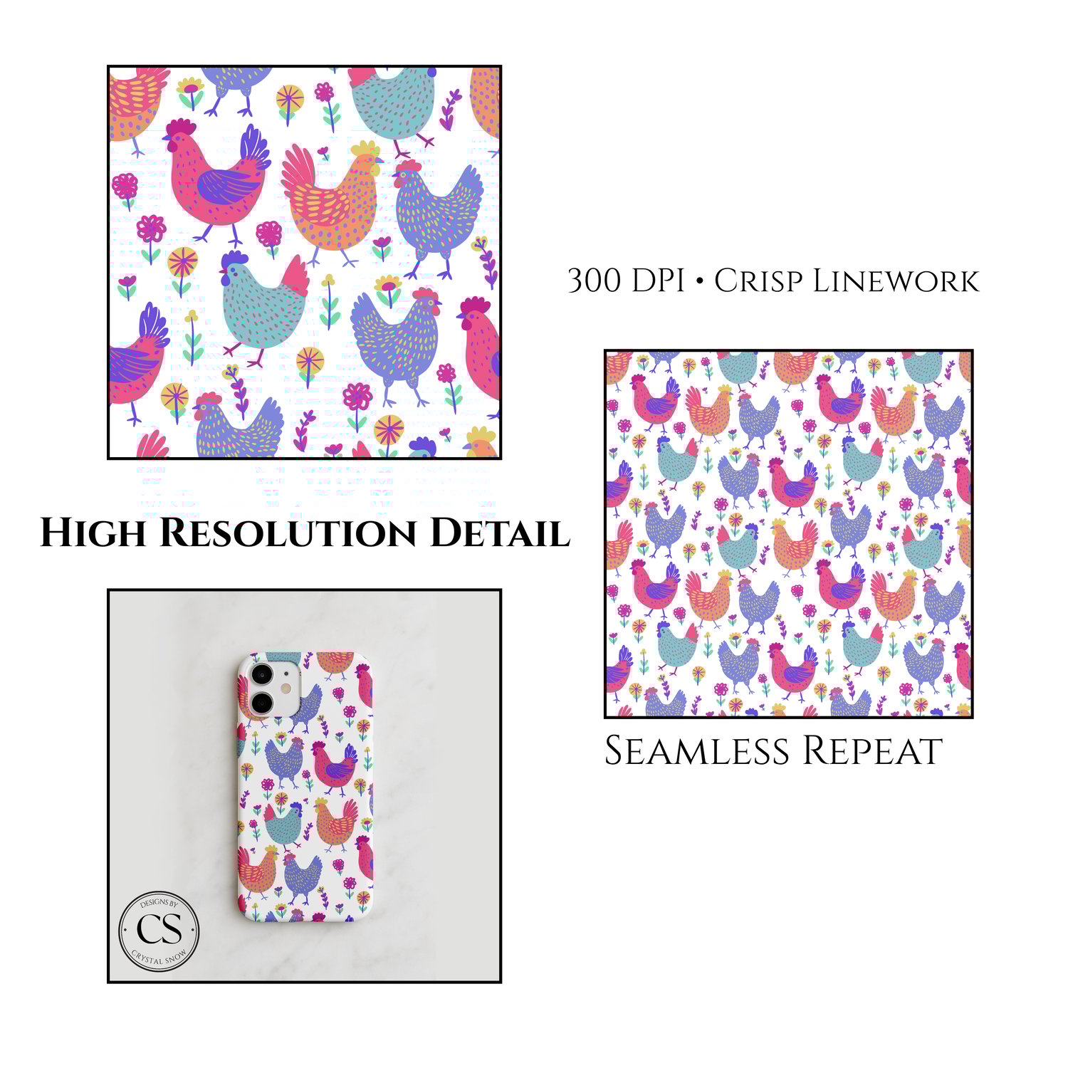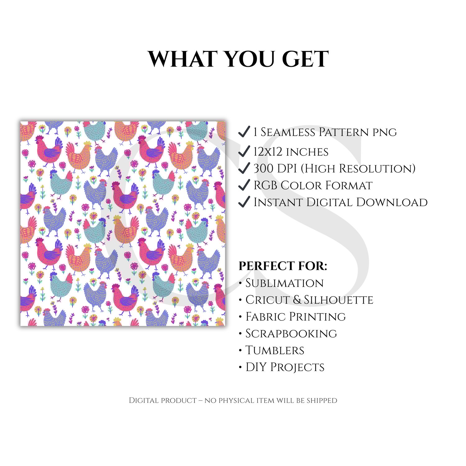 Bright, bold, and full of farmhouse charm ๐๐ธ This rooster seamless pattern is perfect for fun, country-inspired creations!